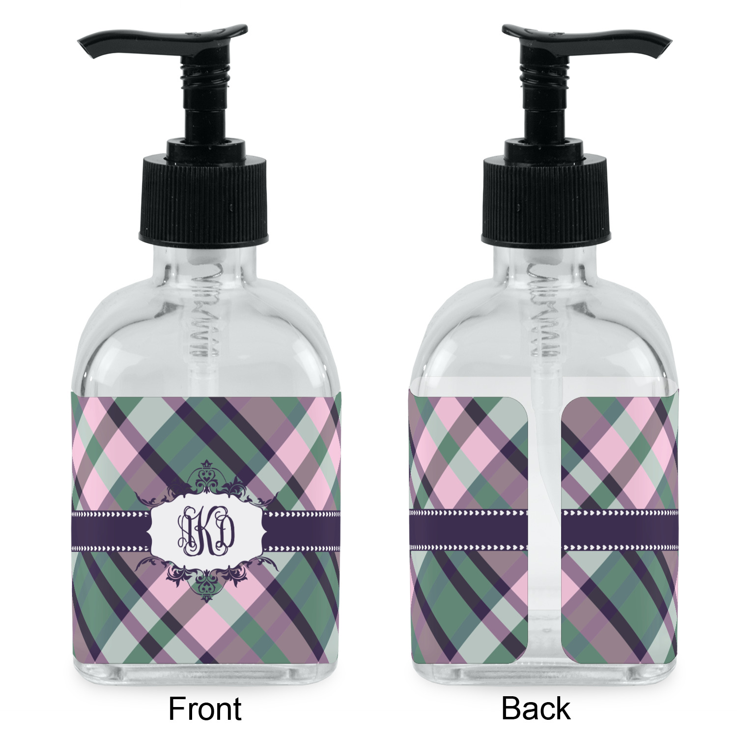 Crafted from a high-quality glass, these soap dispensers and lotion dispensers are durable and robust, while still looking elegant. They are sold with black pumps. Each soap dispenser pump measures at 6.5 by 2.25 inches. On these soap pumps, we display your customized design on a personalized vinyl adhesive on three sides. That way, you can judge how much liquid is in the bottles from the back.