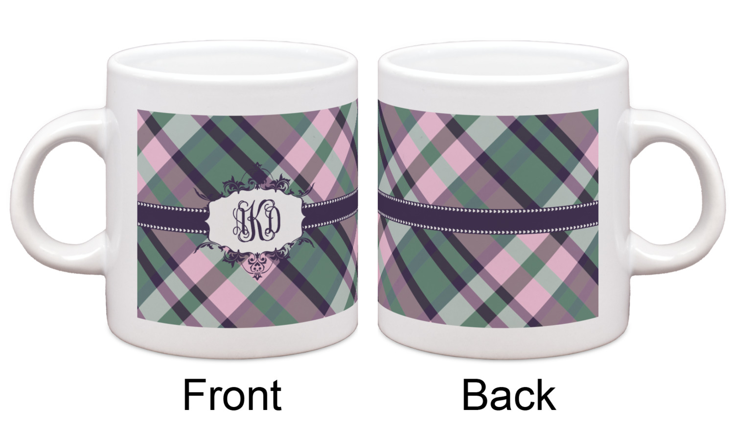 Each of our espresso mugs is a ceramic material sure to keep your drink warm. Personalize one cup for yourself, or order a set of 4! Its the perfect little gift for any coffee lover! We carry two sizes for you to personalize - 3 oz. (approx. 3.25" x 2.325" x 2.625") or 6 oz. (approx. 4" x 2.9" x 2.9"). Our 3 oz. mug is perfect for that single shot espresso while our 6 oz. mug can be your next favorite cappuccino cup holding two shots of espresso!