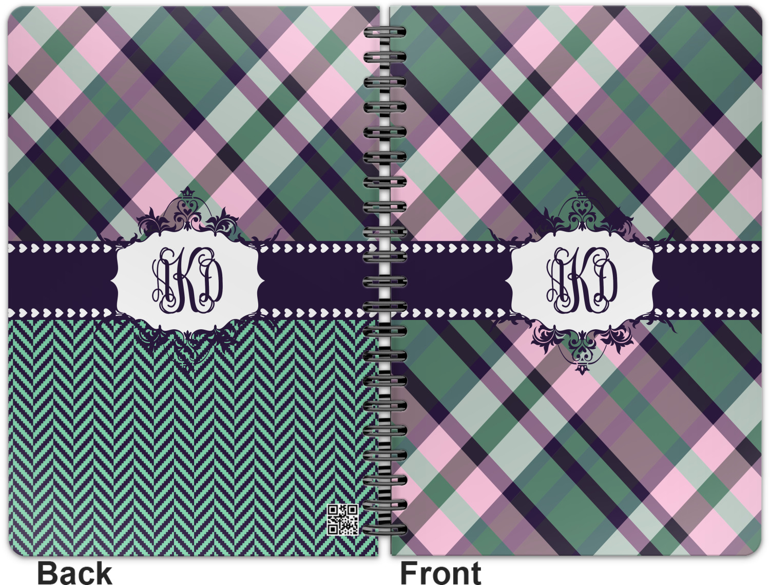 This spiral notebook includes 75 sheets of thick, ruled paper. The front and back of this custom notebook is made of a robust, laminate, plastic covering. We print your personalization on these two panels, underneath a glossy finish, which emphasizes the colors of your design. The two panels and the sheets of paper are held together by a sturdy, black coil. The paper within your bound notebook is perforated for easy, clean tearing.