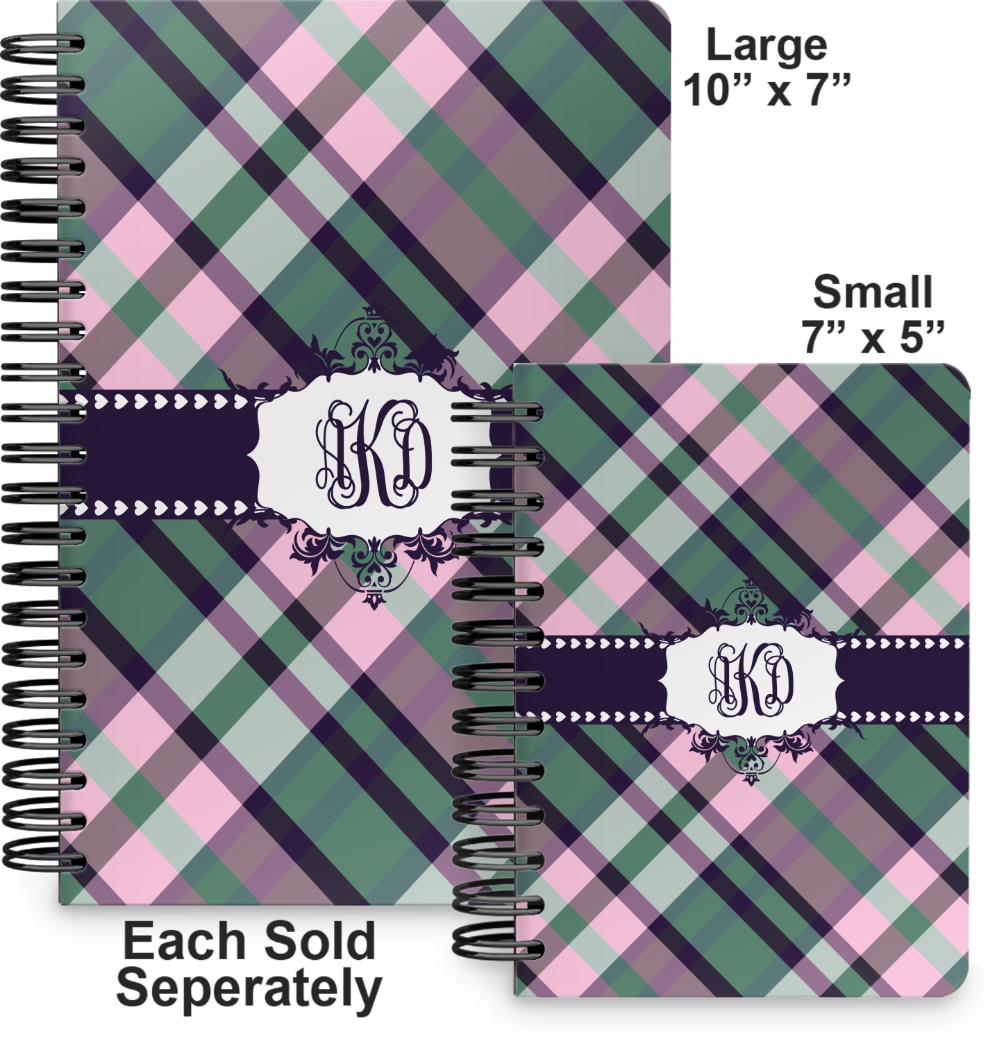 This spiral journal is available in two sizes. The first size is more suitable for a tote or purse and measures at 7" x 5". The second option is a bit larger, at 10" x 7", and is a better fit for a briefcase or backpack.