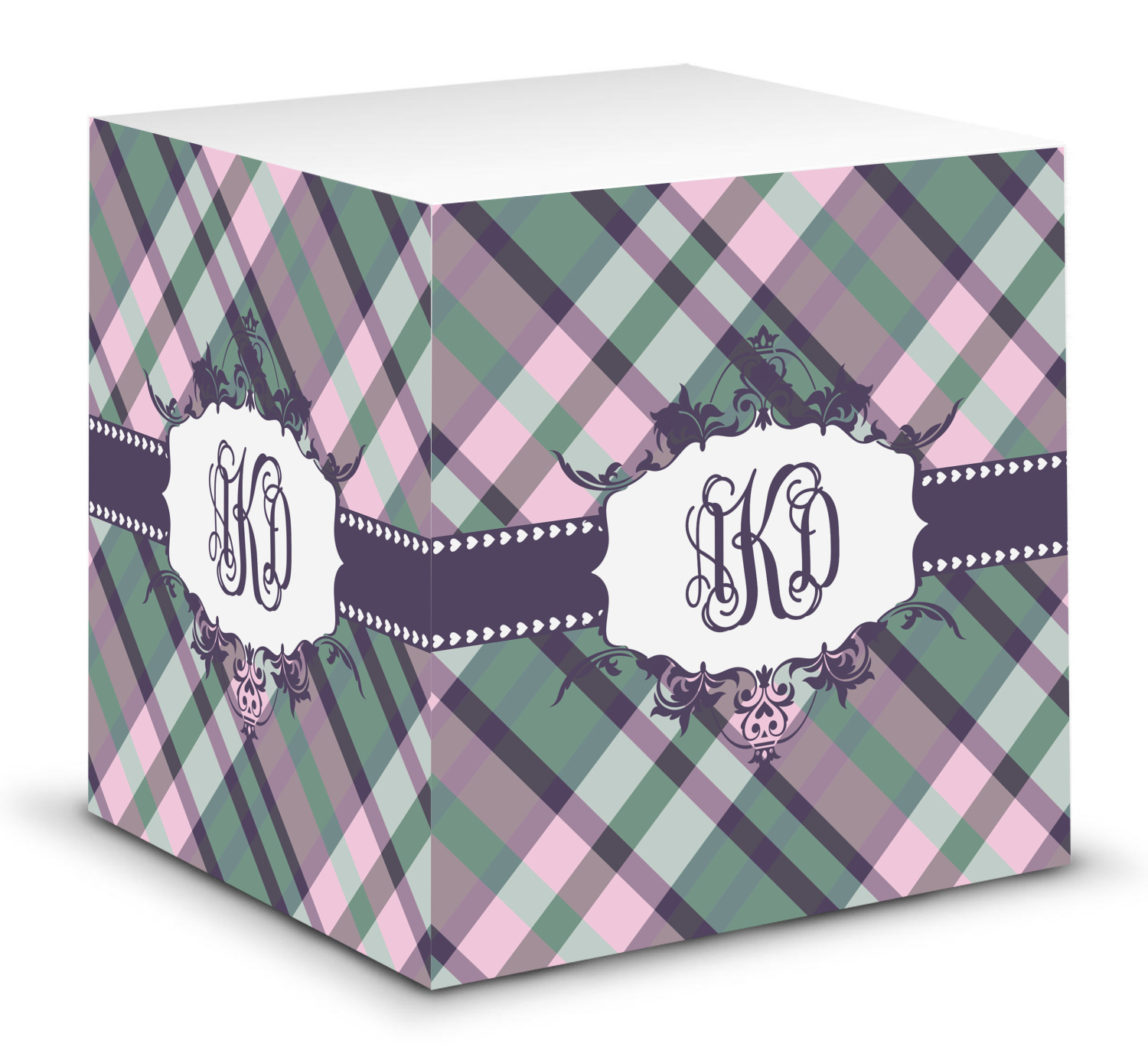 This note cube features 700 sheets of matte, white paper. Each sheet measures at 3.5 by 3.5 inches and has an adhesive strip at its top. Your personalized design is displayed on all four edges of the sticky pad.