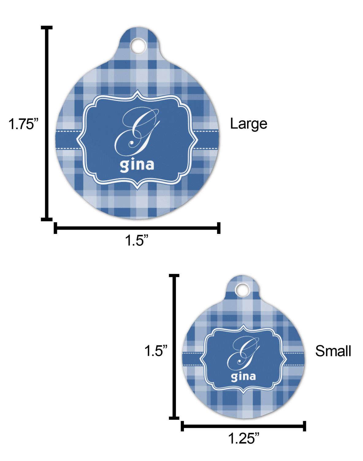 The sturdy, rounded, aluminum tags are available in 2 sizes.