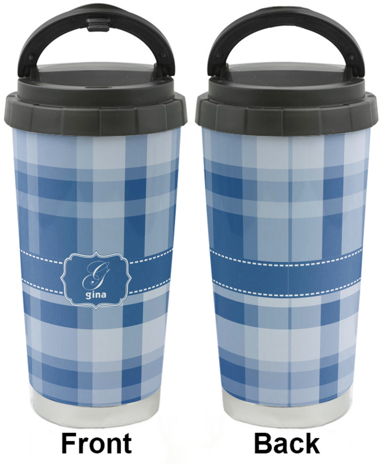 This sleek and tapered 16 oz stainless steel travel cup is a perfect fit in the hand. With the strip of visible stainless steel on the bottom, you'll be feeling classy!