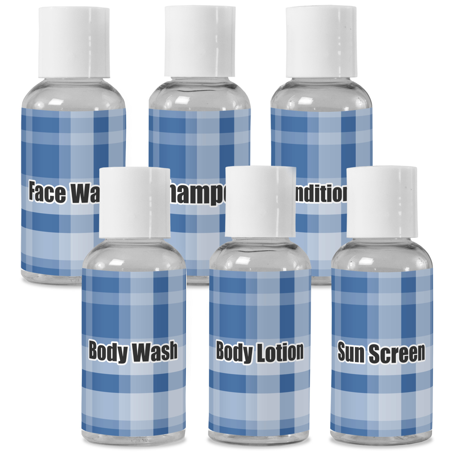 These soap and lotion travel bottles are the perfect place to start. Each set comes with 6 clear plastic bottles with white pop top lids. The bottles are cylindrical and can hold approximately 2.7oz. Perfect for plane travel!