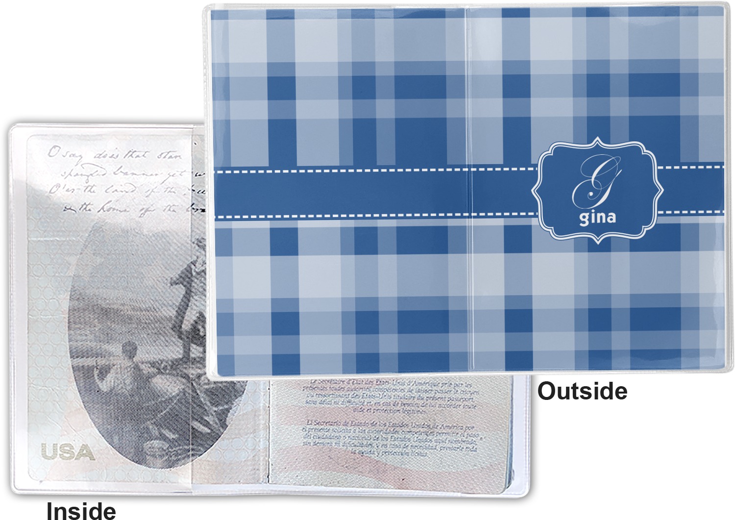 This cover is made of a sturdy clear vinyl with a personalized vinyl insert inside. There is a large and a small pocket on either side to hold the covers of your passport easily and firmly. The passport holder is approximately 7.5" x 5.25", the perfect size to snugly fit your passport. This slim cover is the perfect way to protect your passport without being one more bulky item you have to carry.