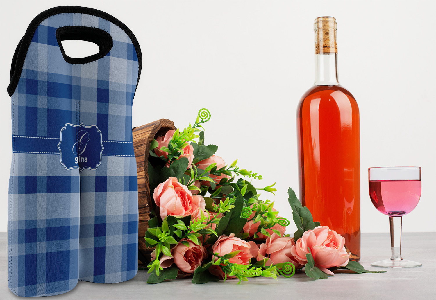 These tote bags are insulated to keep the bottles cold and have a stitched separation down the middle and double handles to keep the two bottles safe and secure during travels.