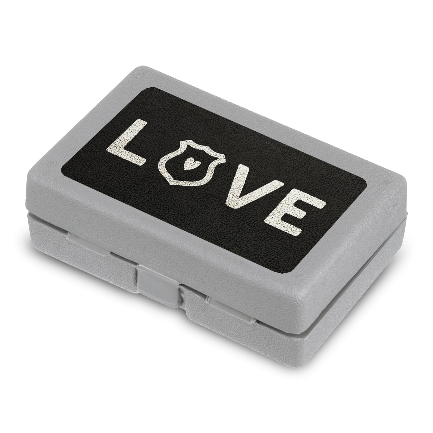 In a tri-fold hard shell case which measures 6" wide, 4" deep and 2" tall, this kit is the perfect size to keep in a desk, garage drawer, or anywhere else in the house. The snap closure keeps it securely closed to ensure the tools do not fall out. With the black faux leather on the outside engraved with your choice of personalization it will be easier to ensure it stays yours by being customized just for you!