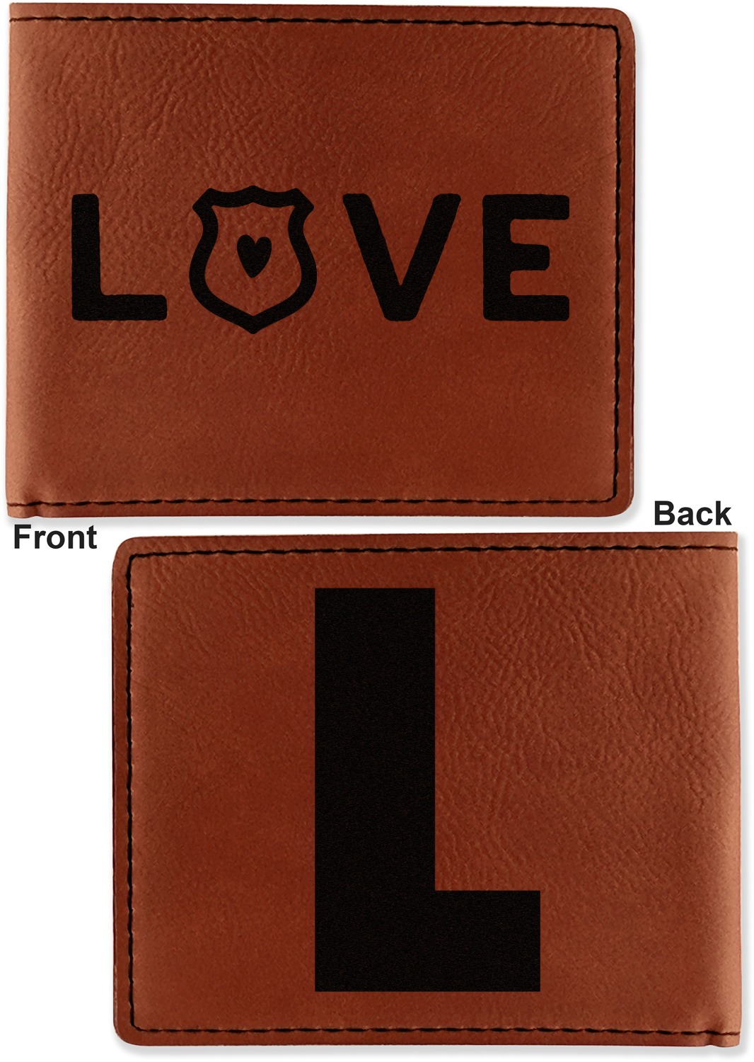 Your bifold wallet will be personalized by laser engraving, which will be a black color on the wallet. Choose a graphic, text, or monogram to personalize your wallet. There are thousands of choices in our design center.