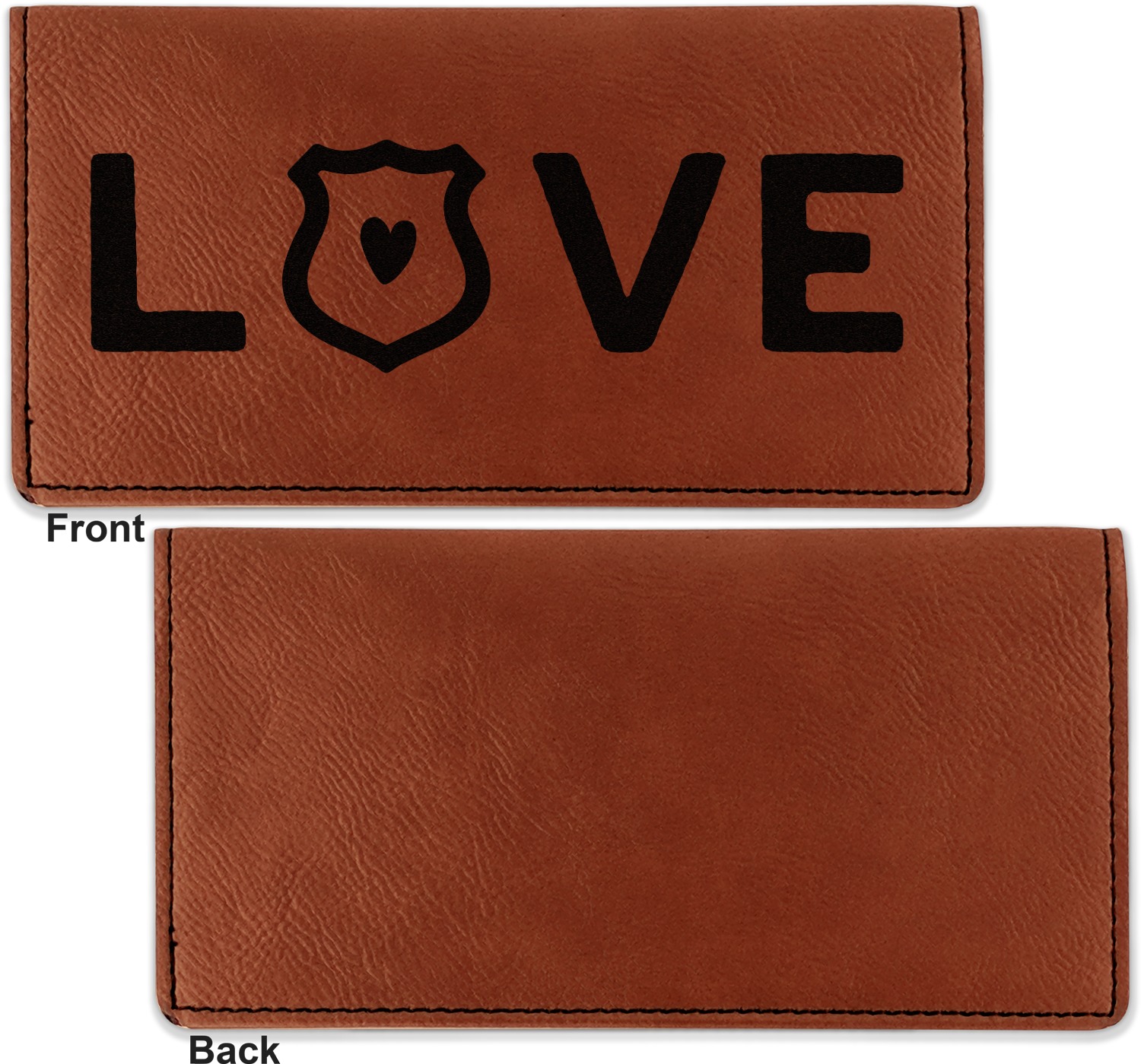 Go into our design center to start personalizing. Your checkbook cover will be laser engraved, making the graphic or text a black color. Choose a fun saying, monogram, or font to go on your checkbook cover. You have the opportunity to do it double or single sided.