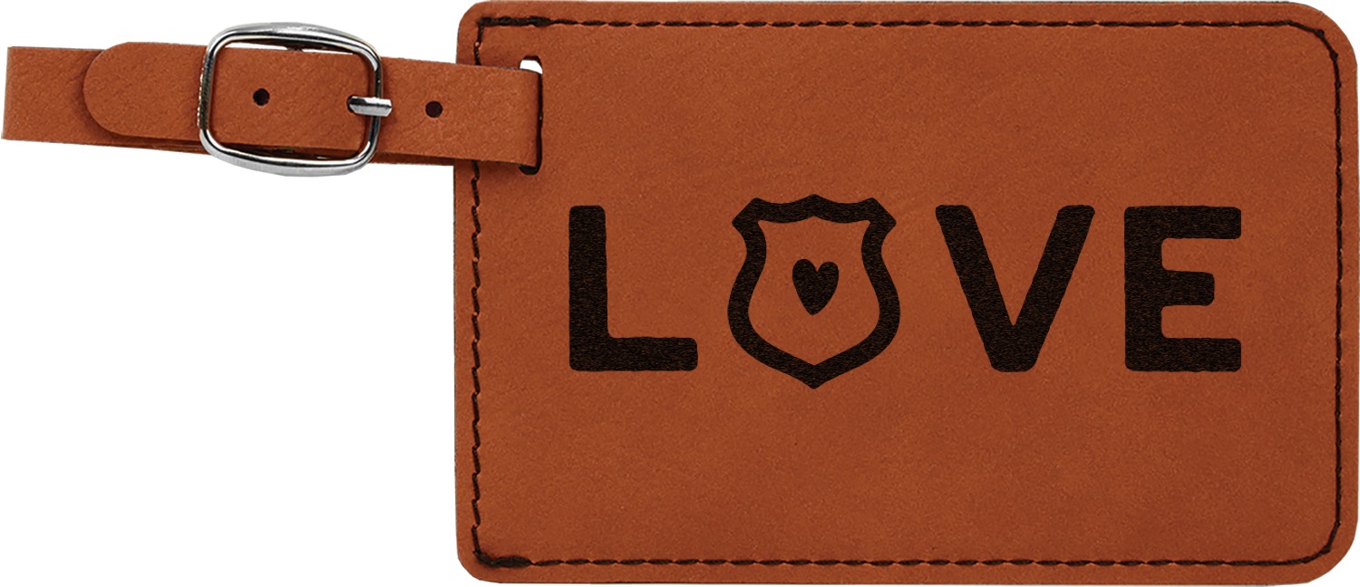 This luggage tag will surely be able to get you started in having all the right tools for traveling. It is made of a beautiful leatherette material that is a nice shade of cognac brown. The front of the tag is where your design goes. The sturdy black stitching gives your design an extra pop and gives the tag extra durability. The back of the tag has a clear vinyl window where you can slip in your address card. The tag comes with a great little buckle strap that you can easily use to clip to your suitcase. The tag itself measures at approximately 5.5"W x 4.25"H.