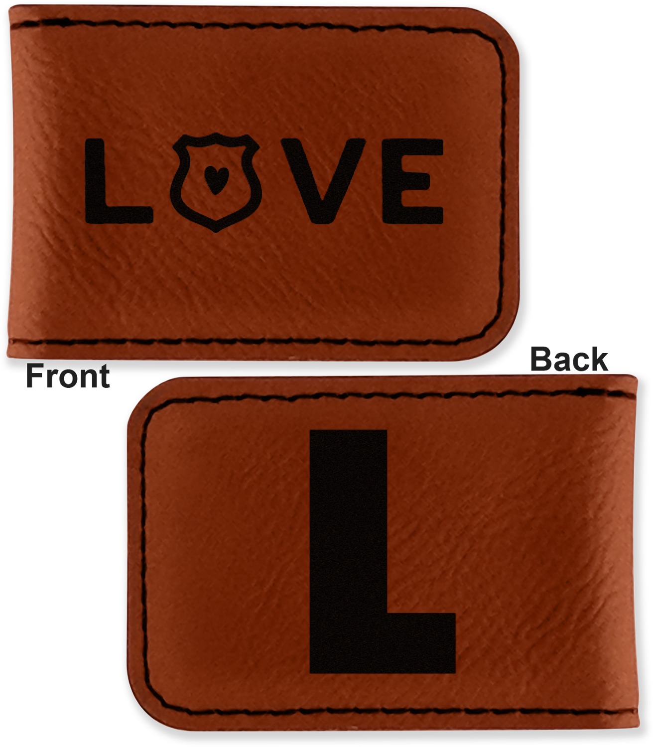 Your money clip will be laser engraved so that the design you choose will come out black. Find a fun graphic, monogram, or font to use to personalize your money clip either on just the front or the front and the back.