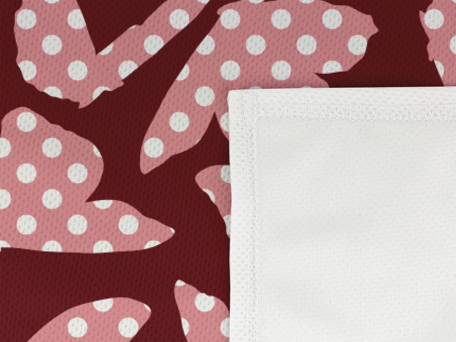The design is split up in three parts with a polka dot butterfly pattern on either side of the middle section which has a subtle moroccan background. The foreground is personalized with a name and a fun polka dotted butterfly graphic above it. The blush and maroon compliment each other quite nicely. Easily change any of these design elements within the design center.