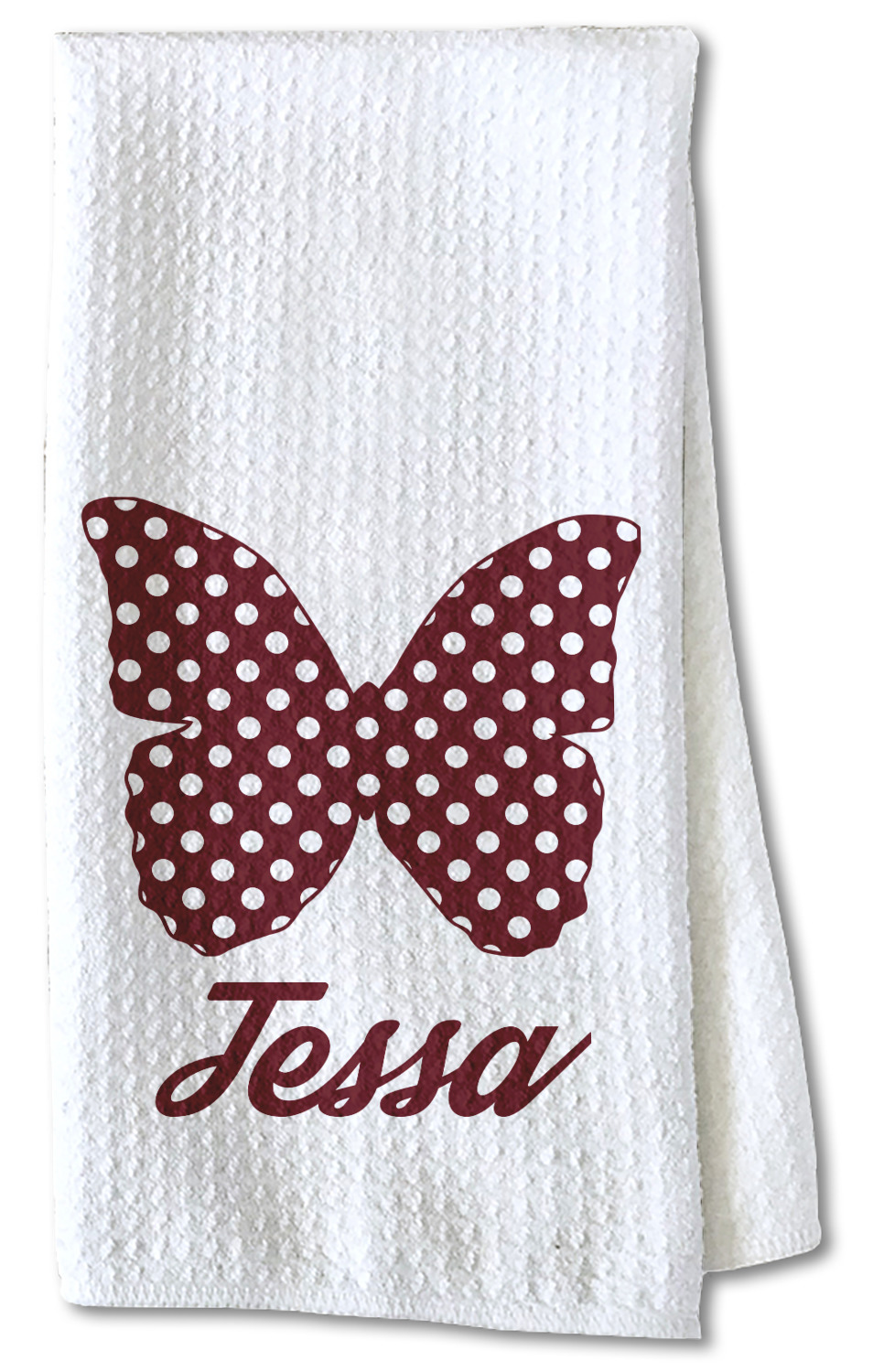 Each waffle weave kitchen towel is approximately 16 x 24 inches with your design printed on one side and the back is white.