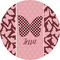 The design is split up in three parts with a polka dot butterfly pattern on either side of the middle section which has a subtle moroccan background. The foreground is personalized with a name and a fun polka dotted butterfly graphic above it. The blush and maroon compliment each other quite nicely. Easily change any of these design elements within the design center.