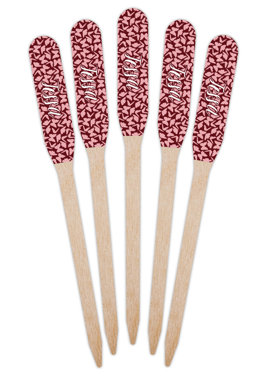 Our paddle style food & drink picks are available in 2 print styles - single sided and double sided.