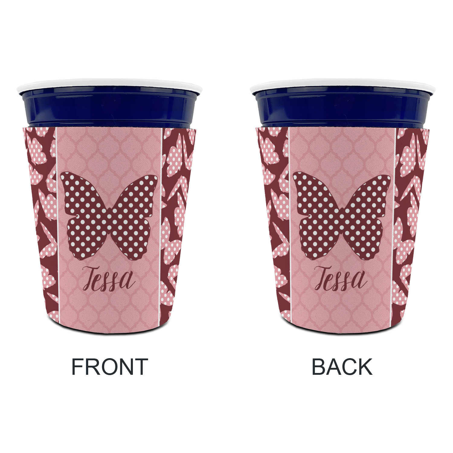Made from neoprene with a polyester outer fabric and sewn seams, these premium quality party cup sleeves are very durable and will hold up to heavy use. They are available in 2 styles - with a bottom or just a sleeve to go around the outside of the tapered cup. The sleeve covers are about 4" tall and cover about 90% of the classic 16 oz. Solo cup.