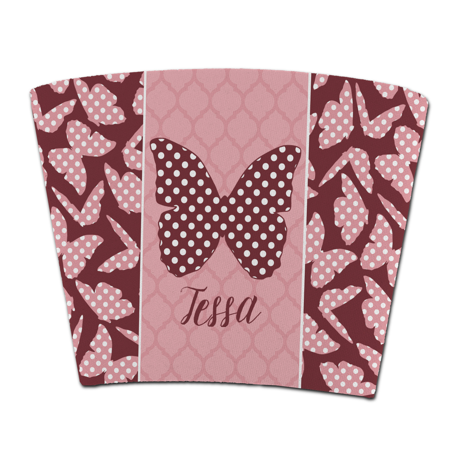 The design is split up in three parts with a polka dot butterfly pattern on either side of the middle section which has a subtle moroccan background. The foreground is personalized with a name and a fun polka dotted butterfly graphic above it. The blush and maroon compliment each other quite nicely. Easily change any of these design elements within the design center.