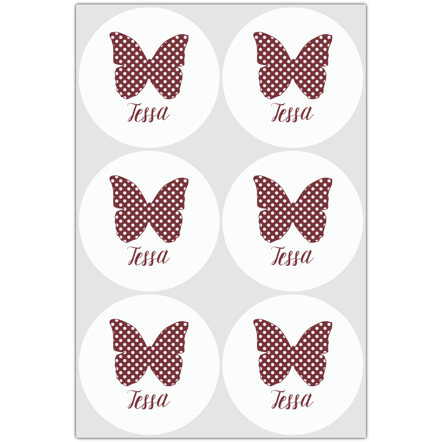 The design is split up in three parts with a polka dot butterfly pattern on either side of the middle section which has a subtle moroccan background. The foreground is personalized with a name and a fun polka dotted butterfly graphic above it. The blush and maroon compliment each other quite nicely. Easily change any of these design elements within the design center.