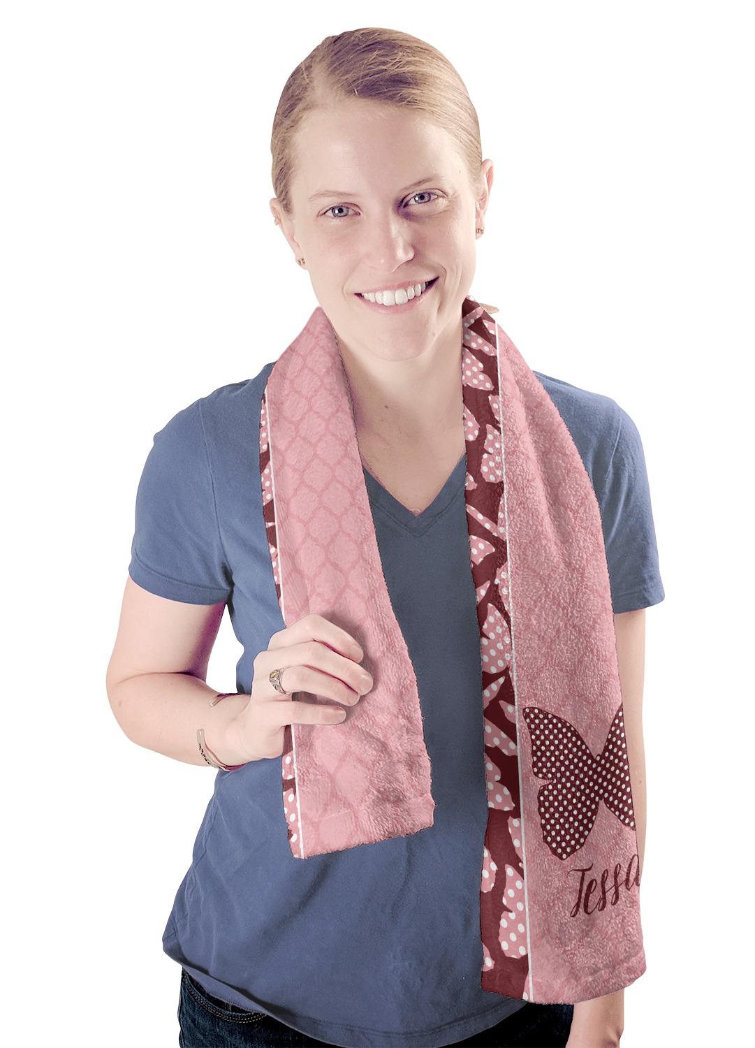 These towels are 44" x 12", which are the perfect size for hanging around your neck on the treadmill or wiping your brow after a hard workout. They are full-print towels with your very own design printed right on the front! They are perfect for soaking up moisture and are quite soft against your skin.