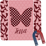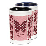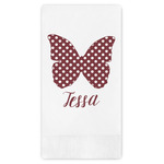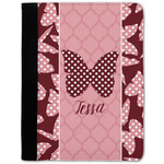The design is split up in three parts with a polka dot butterfly pattern on either side of the middle section which has a subtle moroccan background. The foreground is personalized with a name and a fun polka dotted butterfly graphic above it. The blush and maroon compliment each other quite nicely. Easily change any of these design elements within the design center.