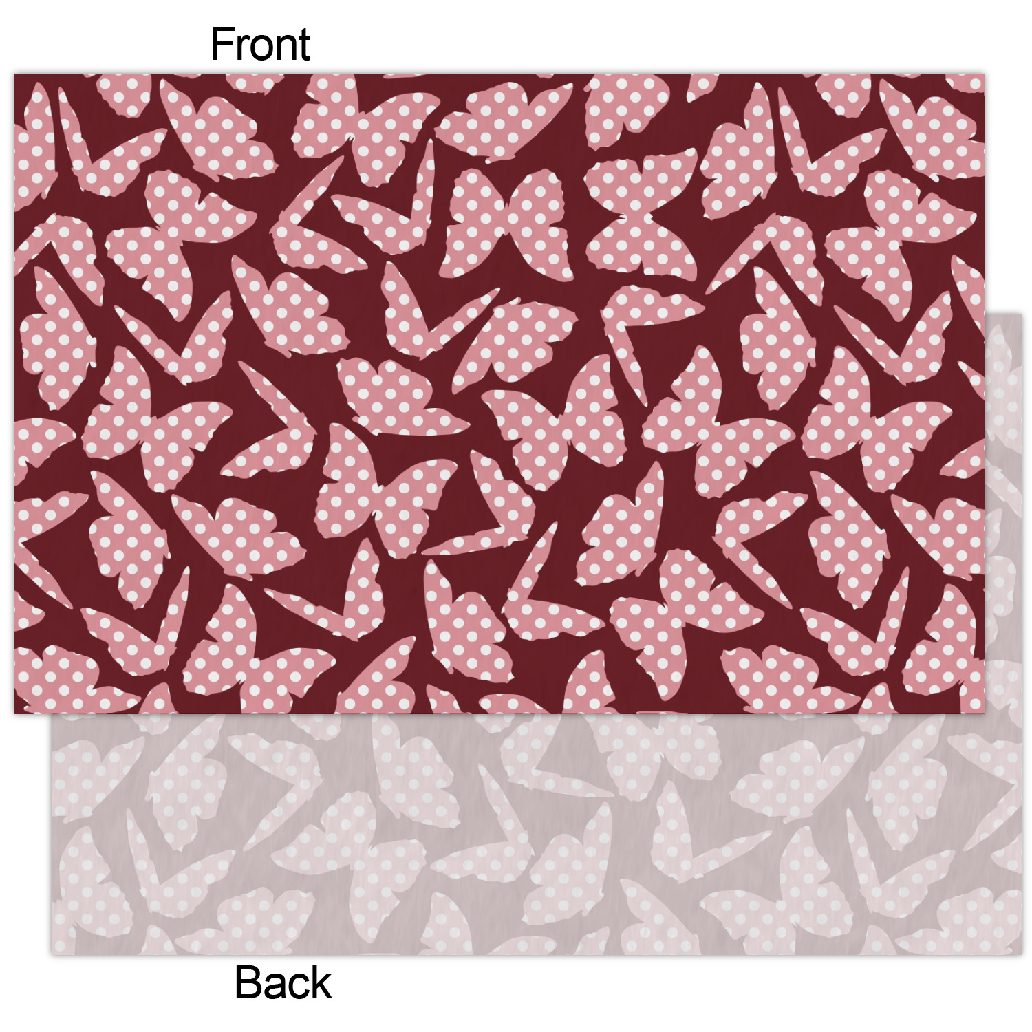 The design is split up in three parts with a polka dot butterfly pattern on either side of the middle section which has a subtle moroccan background. The foreground is personalized with a name and a fun polka dotted butterfly graphic above it. The blush and maroon compliment each other quite nicely. Easily change any of these design elements within the design center.