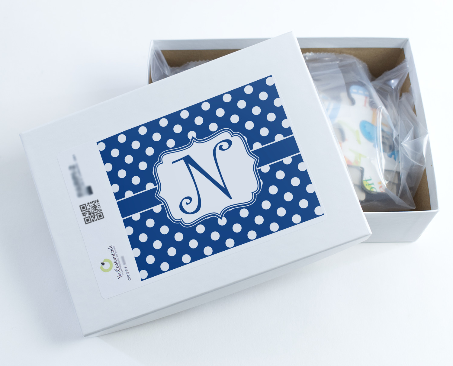 Our design also offers a ribbon, label and an initial for personalization all also available in multiple colors.