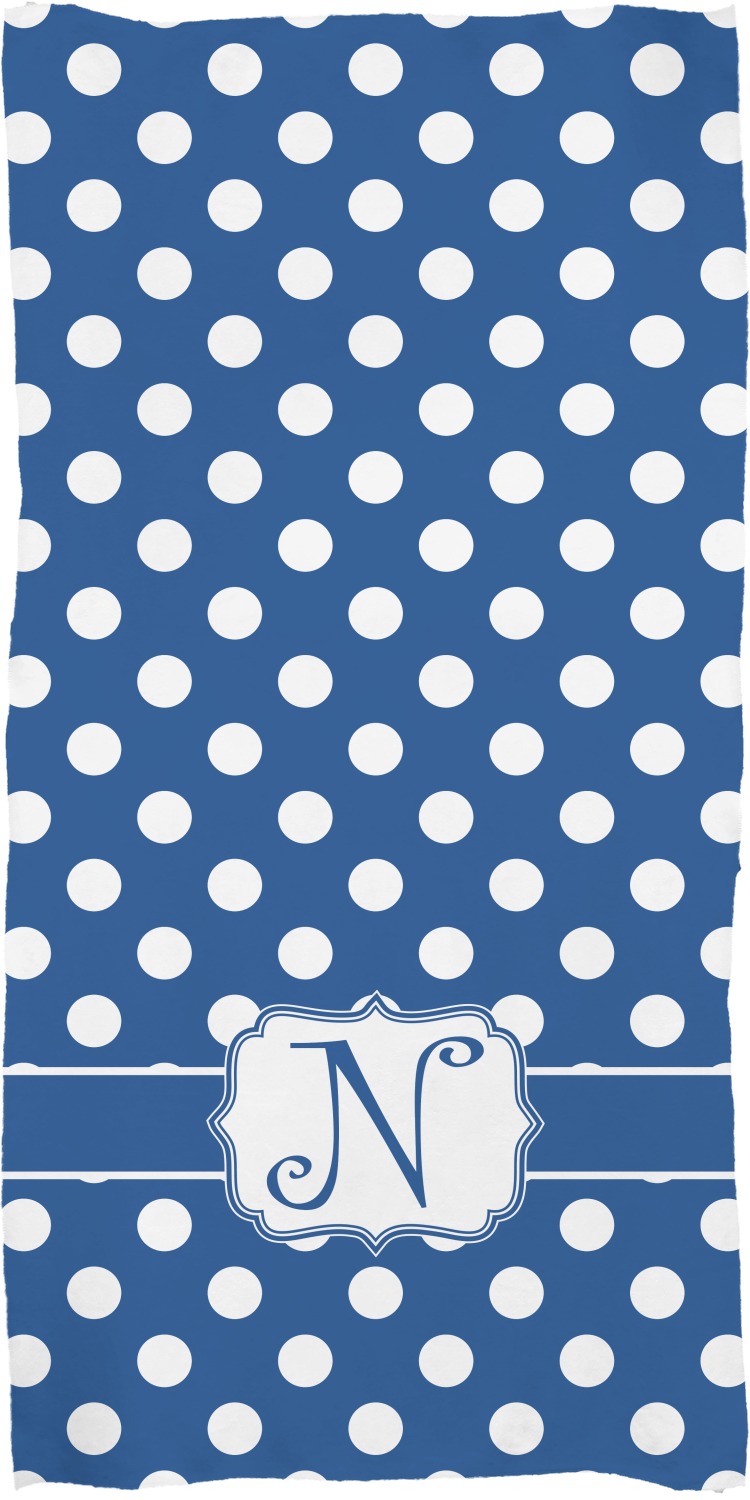 These customized bath towels are slightly larger than your standard towel and are the ideal size for wrapping around your body. They measure approximately 60" x 30". Your customization is displayed across the entire front face of the towel, while the back is white.