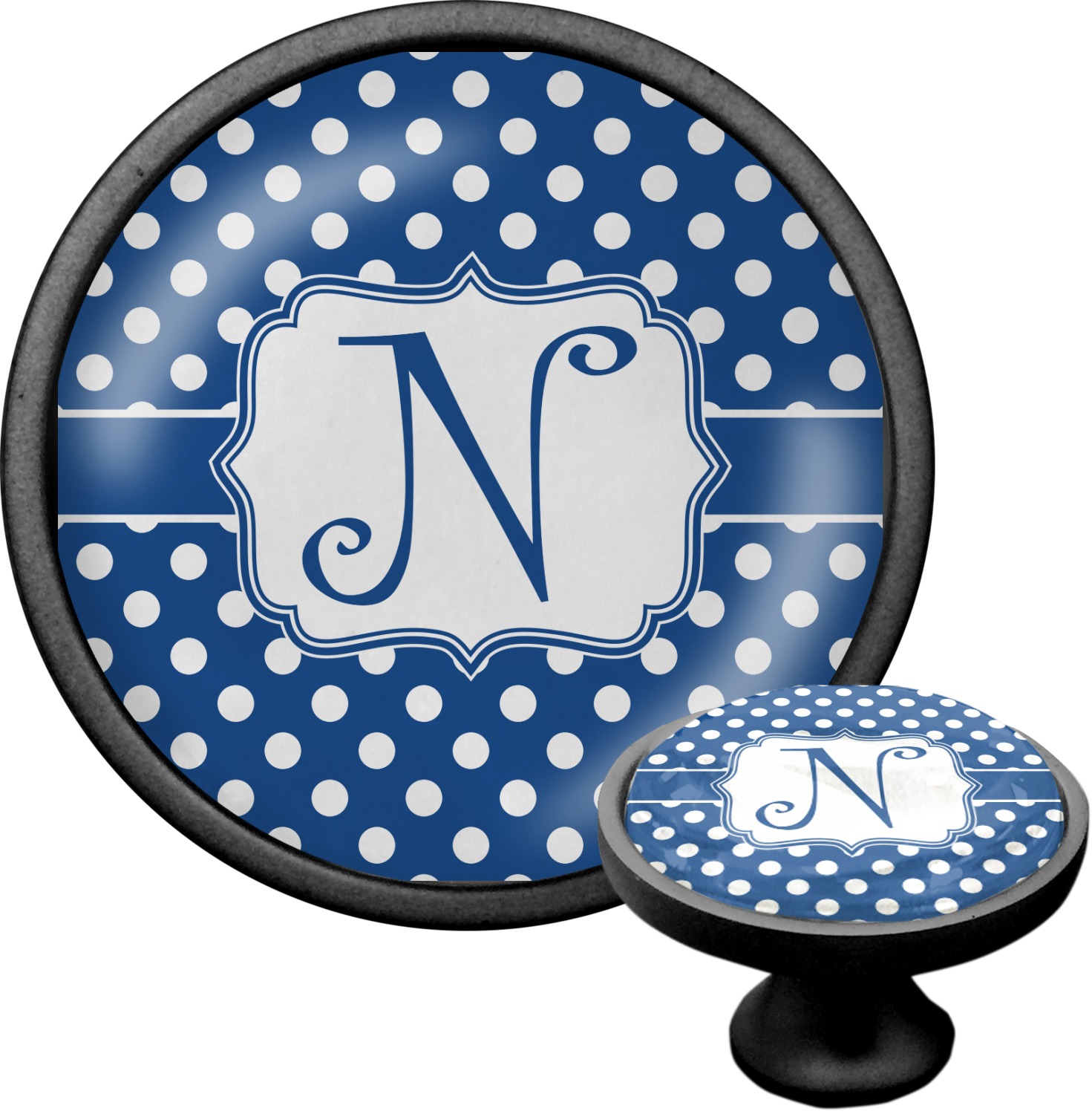 We sell these cabinet pulls in two different colors to better match your room's color scheme. We offer an oil-rubbed bronze base that is black in color, and a satin nickel option, which has a silver color. Your design is displayed across a high gloss vinyl insert that is placed on top of these cabinet handles. We then place a 1 inch thick glass cabochon atop the design, which seals the cabinet knob and makes the colors of your customization stand out. These custom cabinet knobs are approximately 1.3 inches in diameter. Your purchase includes a 1 inch screw that can be used to mount the knob to any cabinet in your home.