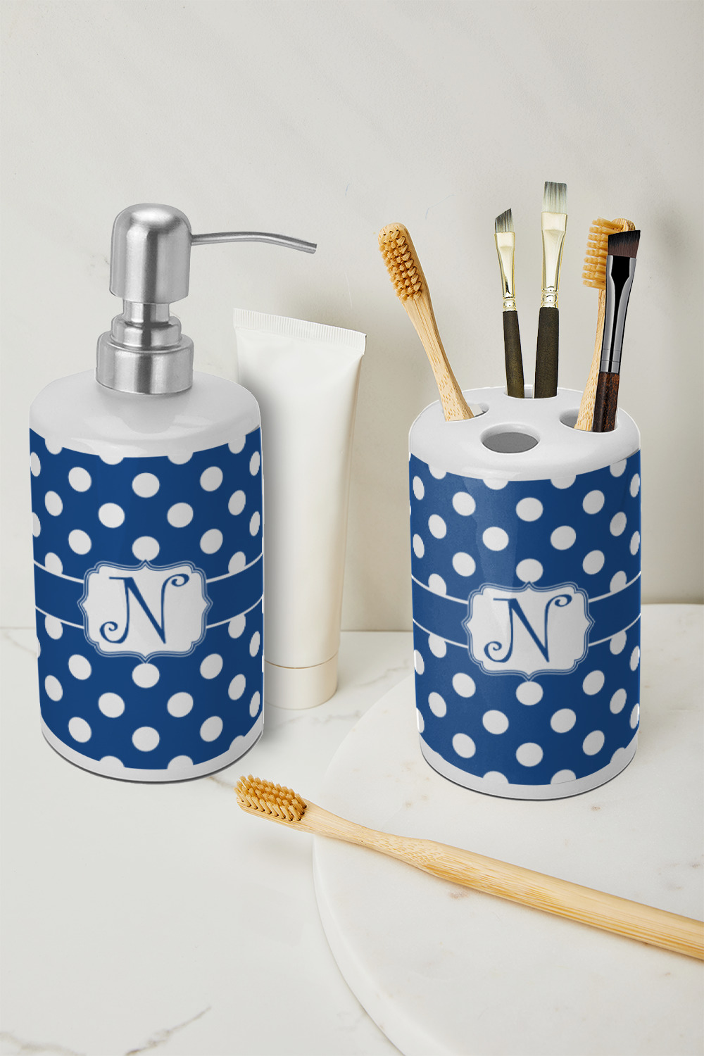 This two piece, ceramic bathroom set will add the perfect splash of color to any bathroom. This set includes one pump dispenser, ideal for soap or lotion, and one toothbrush holder with four holes. Although originally designed for toothbrushes, the holder will also hold make-up brushes, nail files, and other bathroom tools.