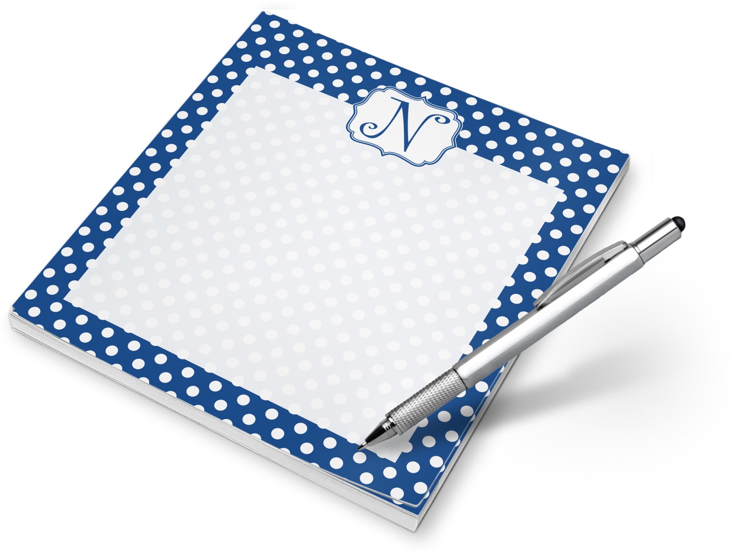 Your custom notepad features 50 sheets of thick, white paper, with your customization in the background and the edges. At approximately 6" x 5.5", these personalized memo pads are slightly larger than your average notepad. The individual notes tear easily from binding, which allows for quick, convenient, note-taking.