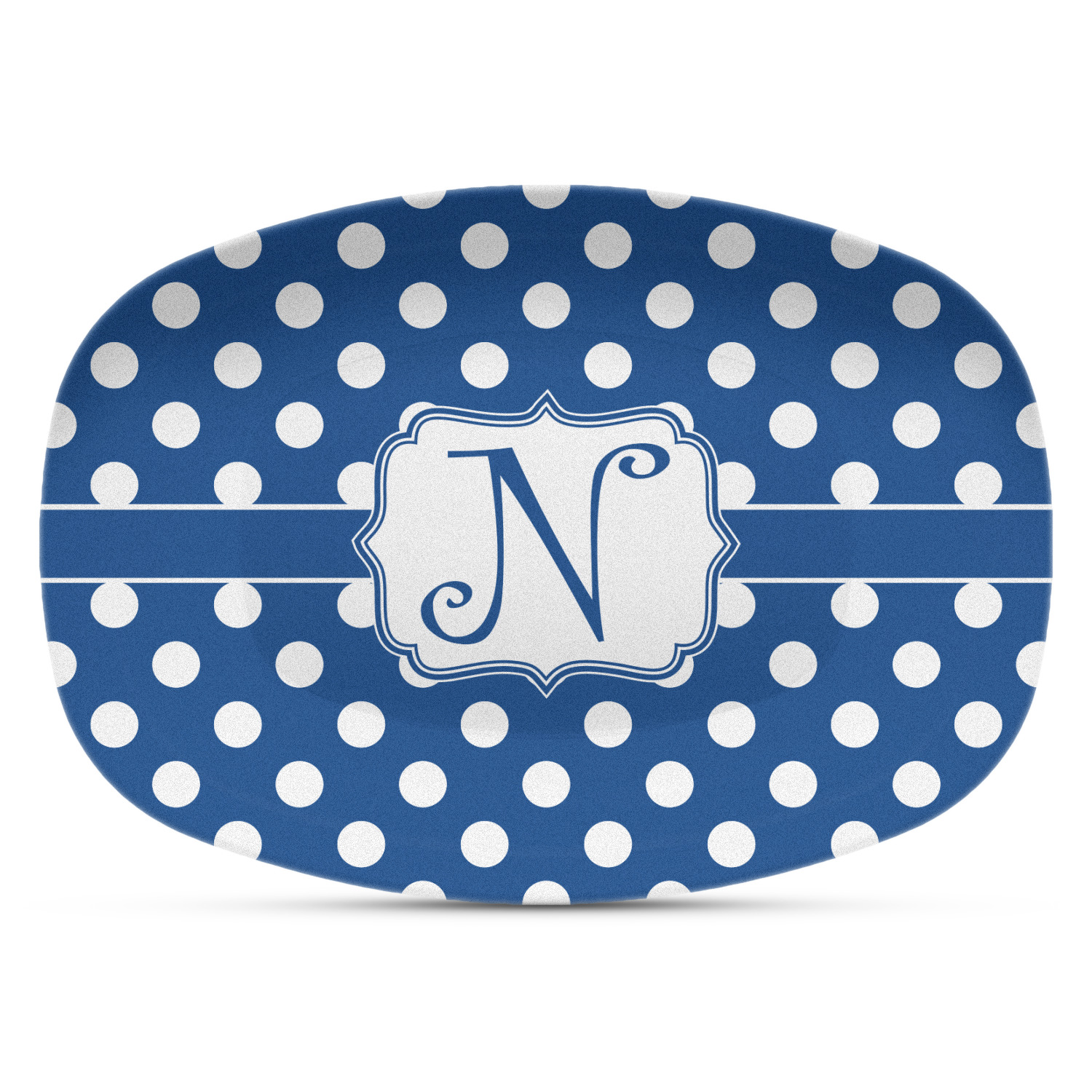 These serving platters are made from a composite, thermo-set, polymer plastic that gives it the versatility, durability, and weight of a melamine platter, without any of the downsides of melamine. These personalized platters, can withstand temperatures up to 250 degrees Fahrenheit, for up to 60 minutes. No harmful chemicals, such as BPA, formaldehyde, and DEHPs were used in the manufacturing of this product. This large serving platter measures at 14" x 10.25", and is spacious enough to hold any of your appetizers or bite-sized desserts. The platter exhibits your personalization across the entirety of its front.