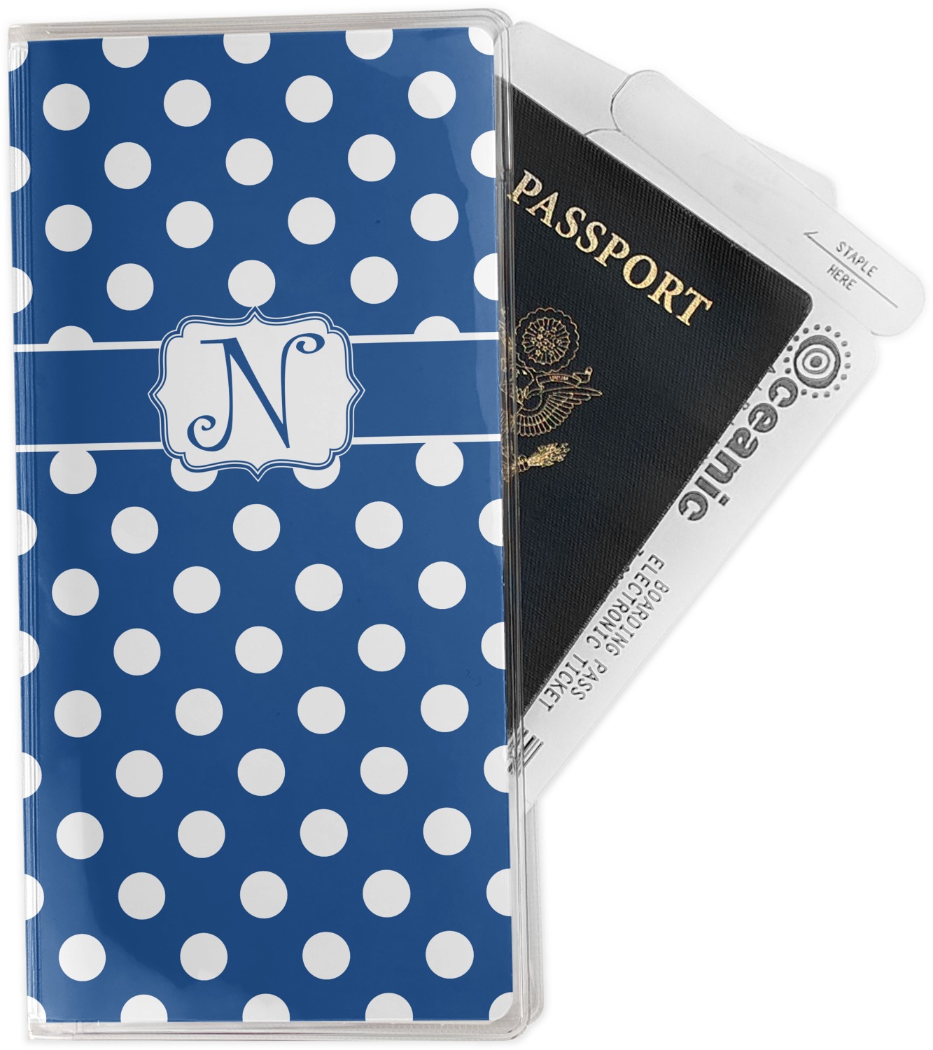 This document holder is really sturdy and has your personalized design inserted right behind all of your nifty pockets, so you can see it on the front and back covers. There are two large pockets and two shorter pockets inside. The larger pockets are tall enough to keep your boarding pass nice and straight. The smaller pockets (on top of the large pockets) are large enough to fit your passport, credit card, or ID.