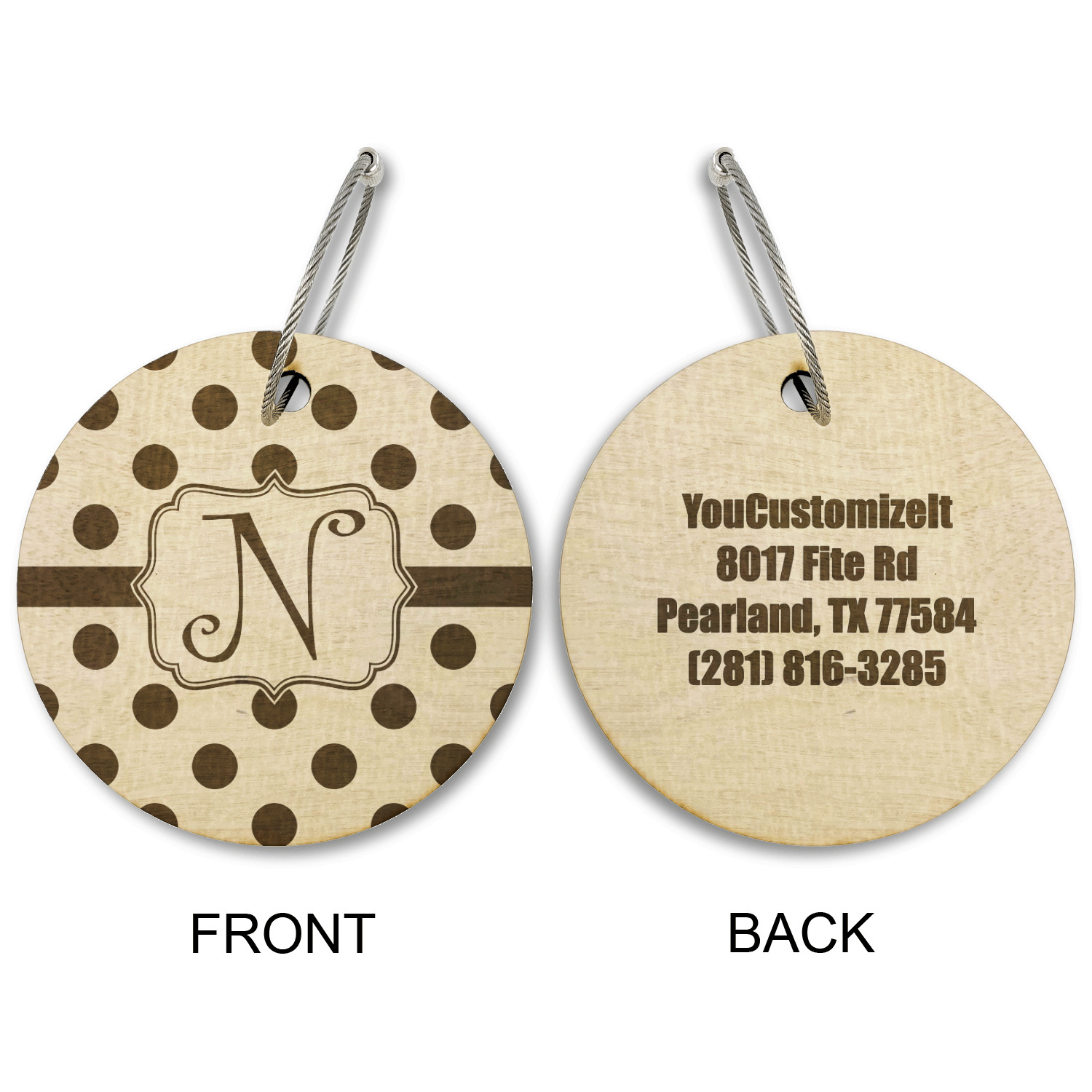 Made from a premium hardwood, these luggage tags are laser engraved and cut just for you. The front contains your design of choice and the back has your contact information to ensure your luggage gets back to you if ever lost.