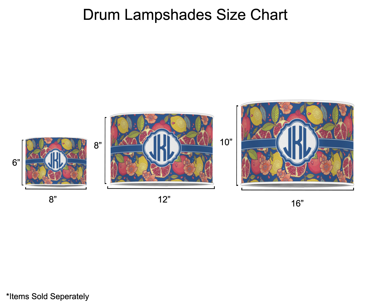 Our customized lamp shades also come in 3 different sizes: 8", 12" and 16", measuring at 8" in diameter by 6" tall, 12" in diameter by 8" tall, and 16" in diameter by 10" tall, respectively.