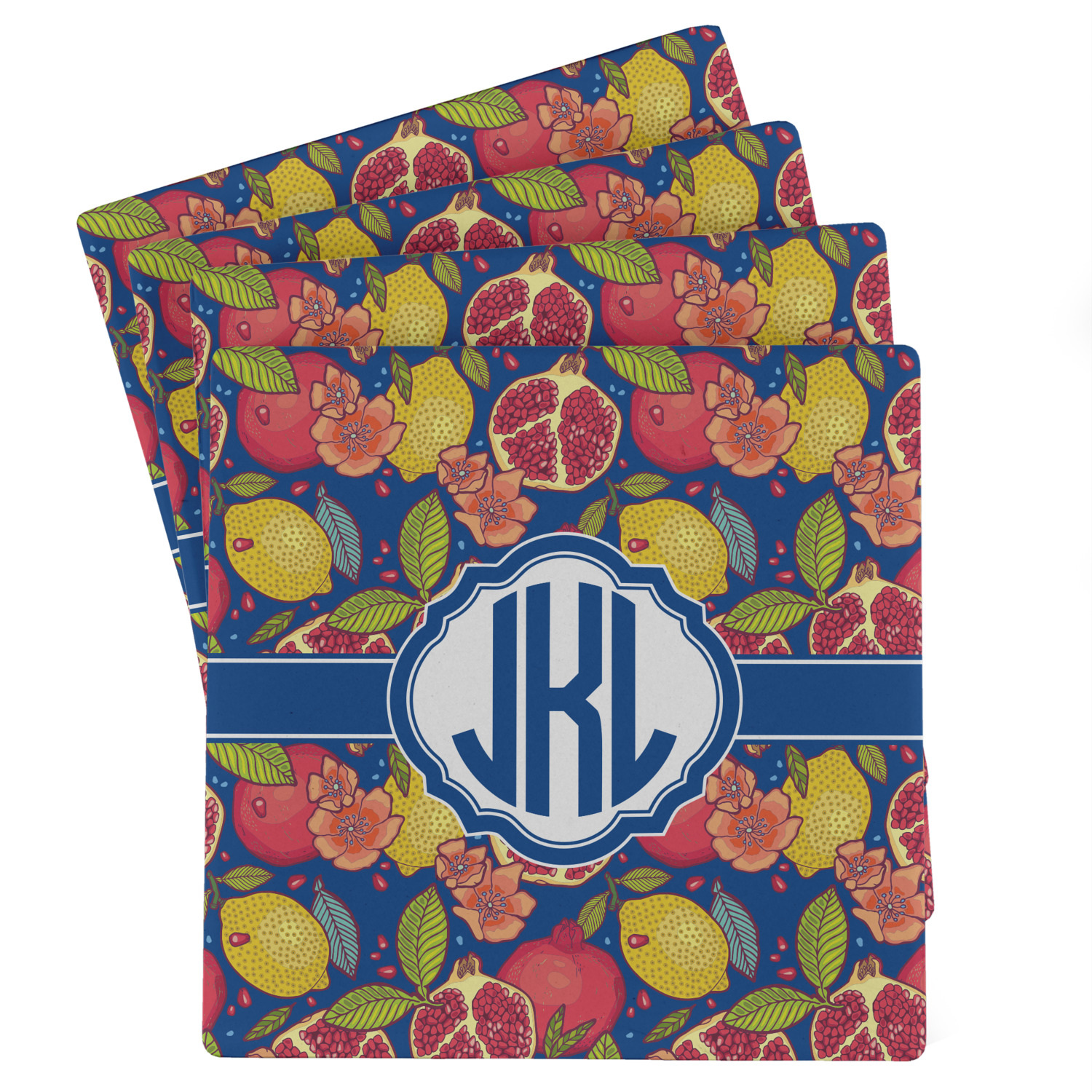 This beautiful Pomegranate & Lemon design is part of our fruits and vegetables collection. This design features the tasty fruits in multiple colors and sizes, surrounded by leaves and seeds on a dark blue background (however, you have the option of selecting any color!)