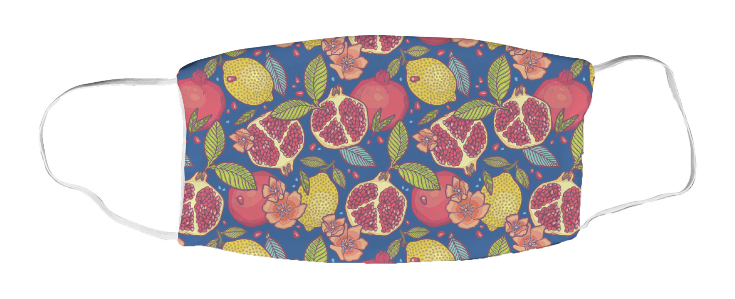 This beautiful Pomegranate & Lemon design is part of our fruits and vegetables collection. This design features the tasty fruits in multiple colors and sizes, surrounded by leaves and seeds on a dark blue background (however, you have the option of selecting any color!)