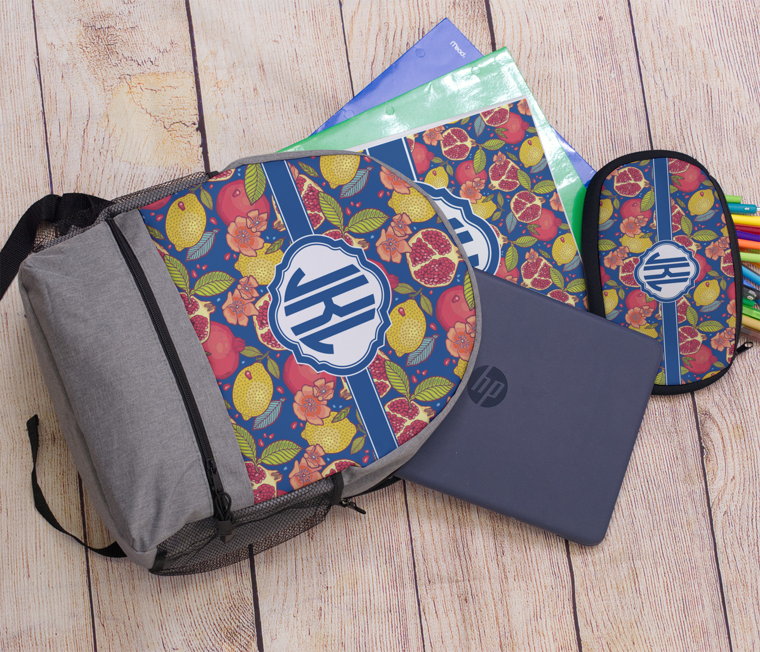 This beautiful Pomegranate & Lemon design is part of our fruits and vegetables collection. This design features the tasty fruits in multiple colors and sizes, surrounded by leaves and seeds on a dark blue background (however, you have the option of selecting any color!)