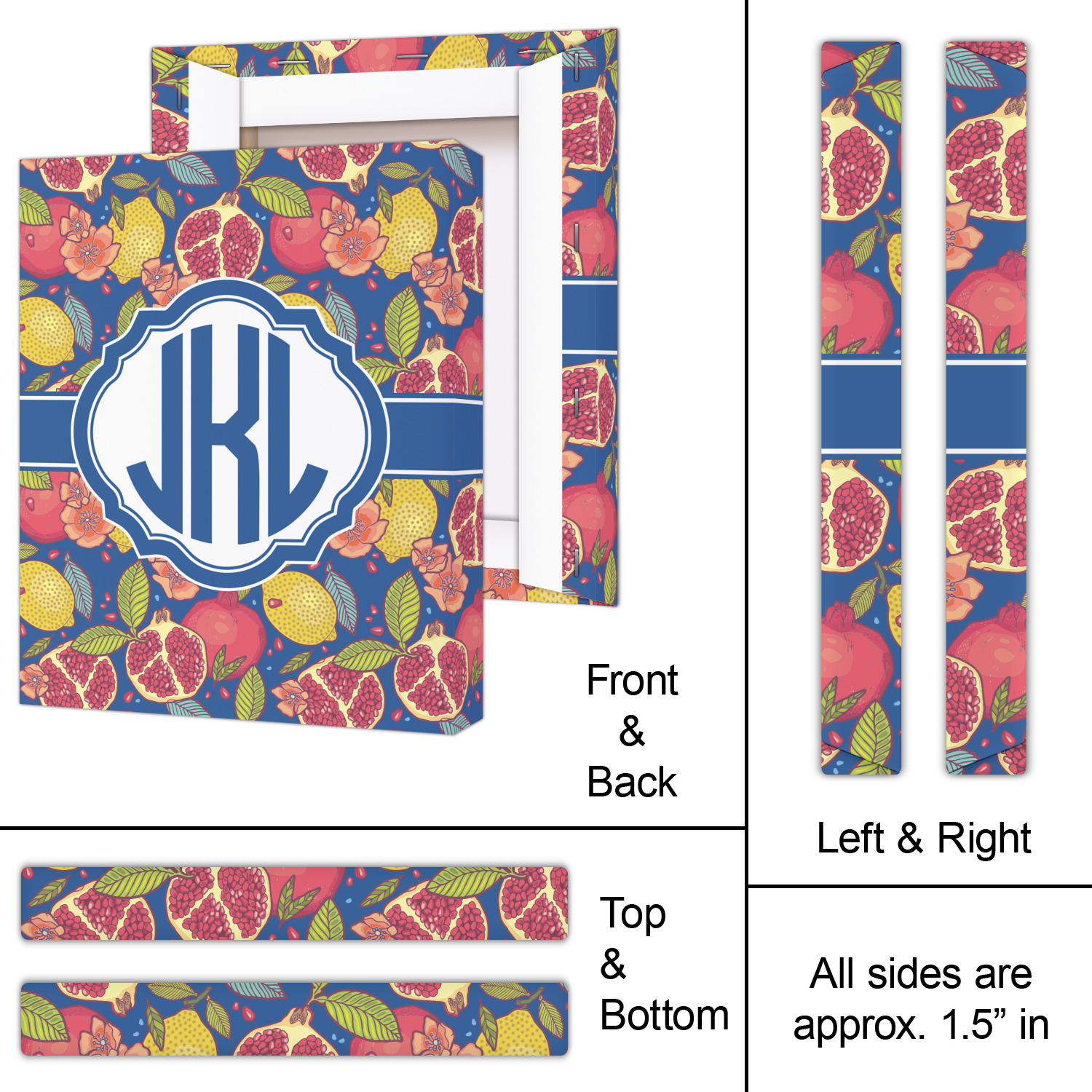 This beautiful Pomegranate & Lemon design is part of our fruits and vegetables collection. This design features the tasty fruits in multiple colors and sizes, surrounded by leaves and seeds on a dark blue background (however, you have the option of selecting any color!)