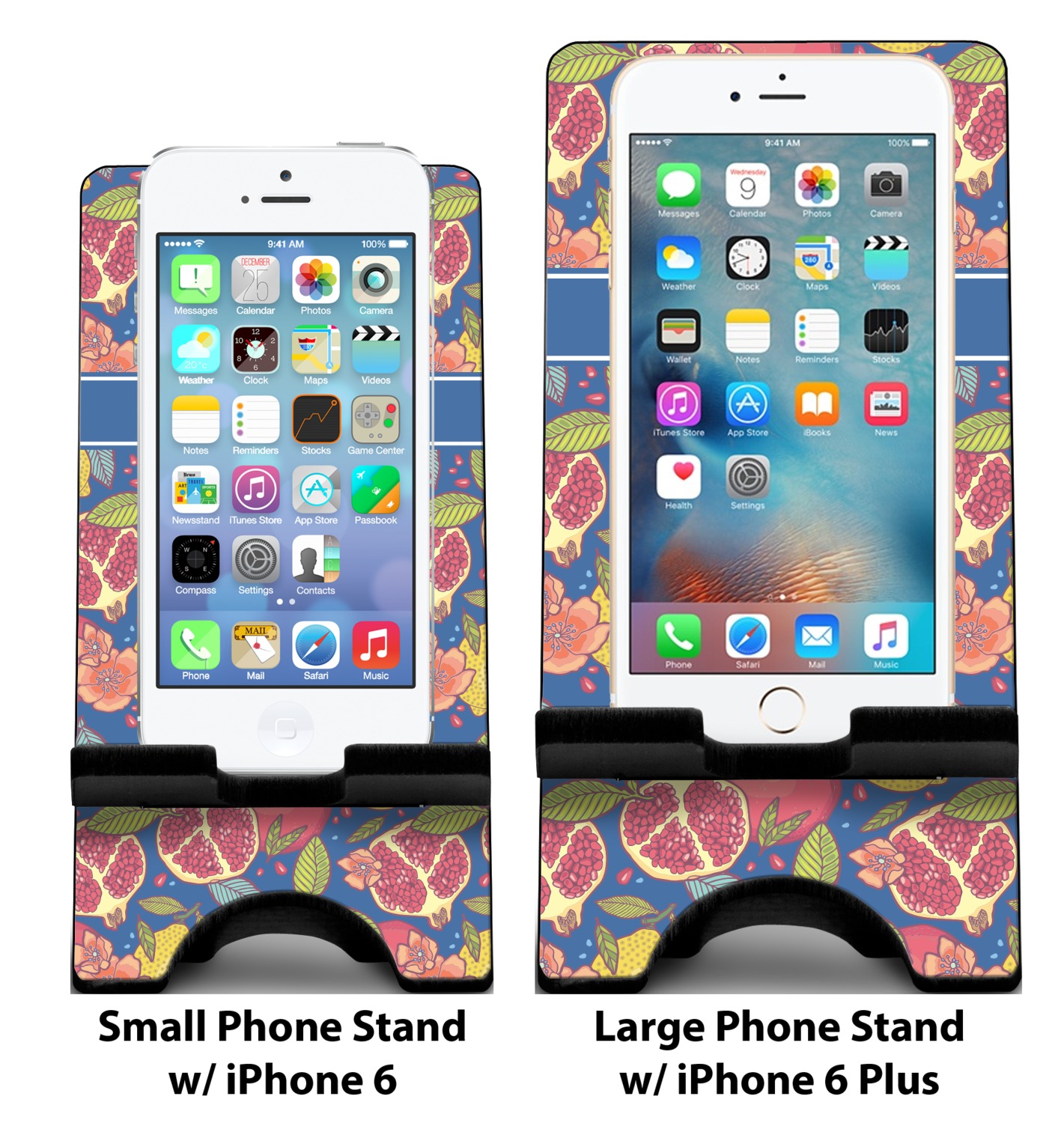 To meet your needs, we offer four variations of this IPhone stand. The backboard of the first version is shaped as a plain, yet sleek rectangle, and is available in two sizes. Our smaller size is approximately 4 by 3.25 by 7 inches, while the larger model is 4 by 3.77 by 8.5 inches. Alongside this model, we also provide you with a more decorative option. The upper part of our second version features a curved edge, for a classy, suave appearance. This phone holder is also sold in two sizes: a smaller version, which is 4 by 3.25 by 7 inches, and our larger model, which is 4 by 3.77 by 8.5 inches. Both models will support large phones, but the larger model is better if you wish to proudly display your personalized design.