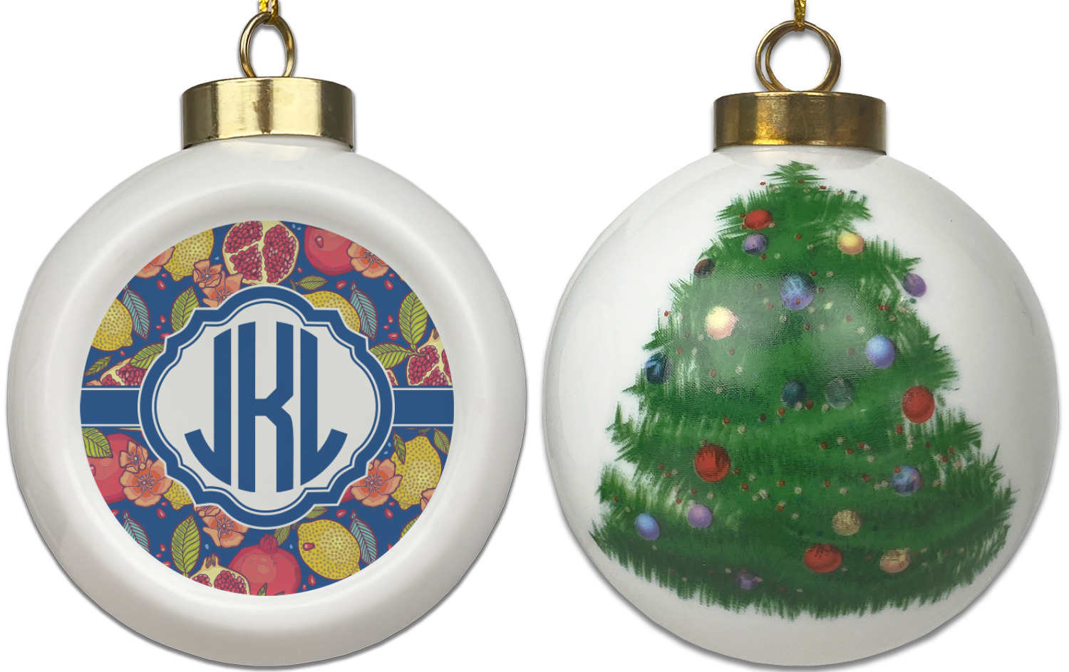 Our Christmas ornaments are a unique ceramic ball shape with a twist as it has a flat face to display your custom design! Select from one of our two design types - Christmas Tree or Poinsettia Garland - to adorn the curved back of your personal design. Each ornament measures 3H x 2.5W x 2D accompanied with a gold string accent for finishing touches to hang on your beautiful Christmas tree!
