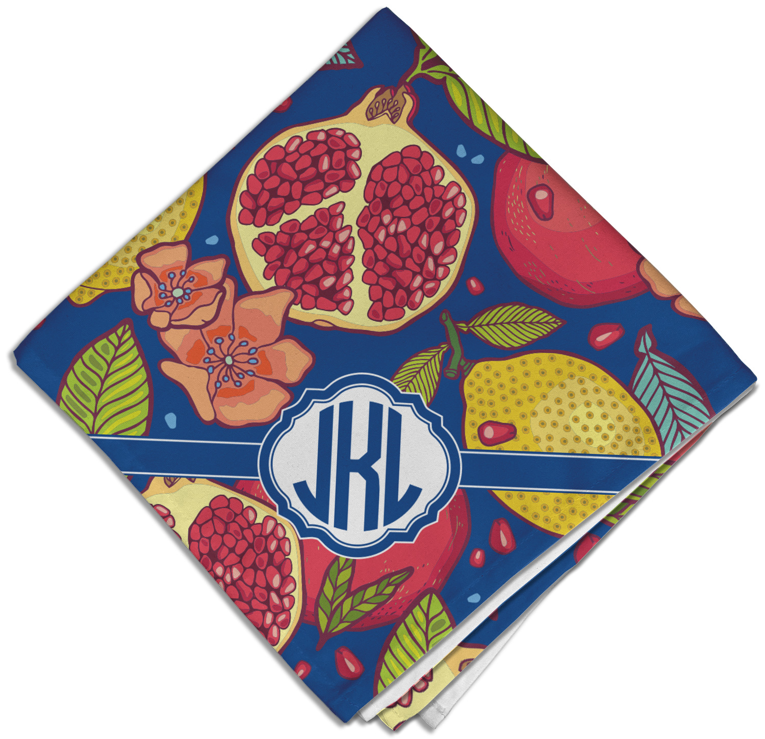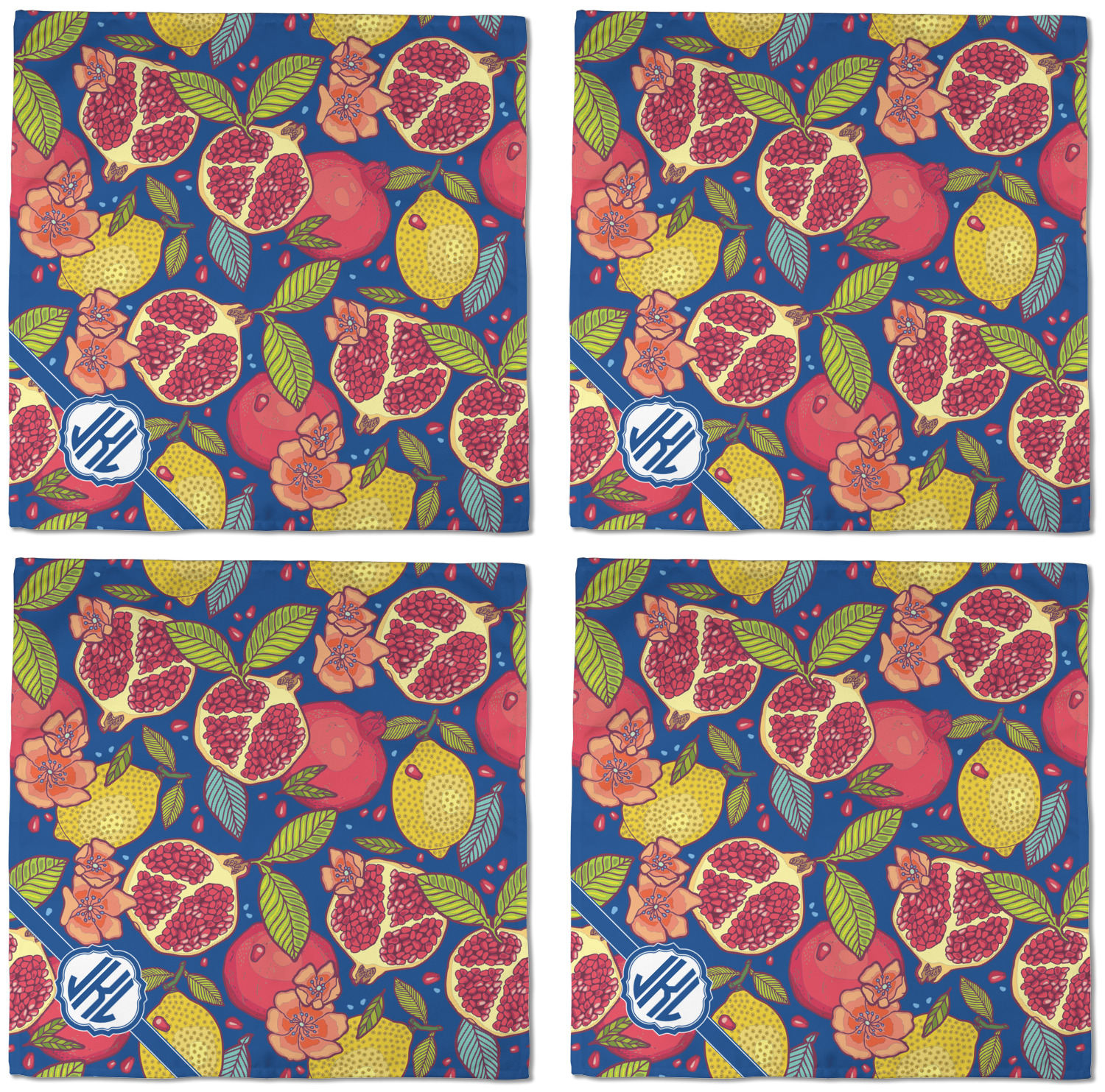 This beautiful Pomegranate & Lemon design is part of our fruits and vegetables collection. This design features the tasty fruits in multiple colors and sizes, surrounded by leaves and seeds on a dark blue background (however, you have the option of selecting any color!)