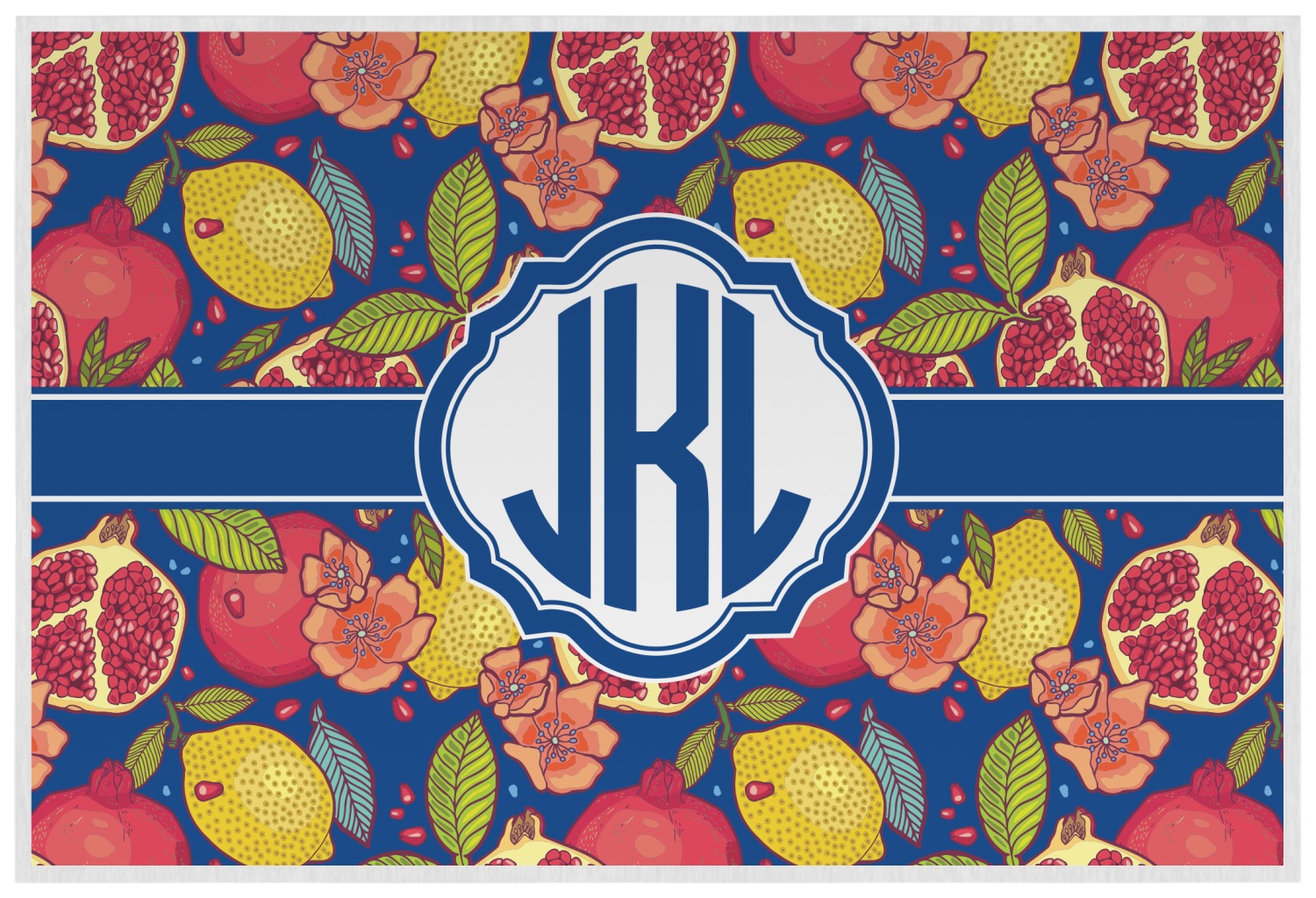 This beautiful Pomegranate & Lemon design is part of our fruits and vegetables collection. This design features the tasty fruits in multiple colors and sizes, surrounded by leaves and seeds on a dark blue background (however, you have the option of selecting any color!)