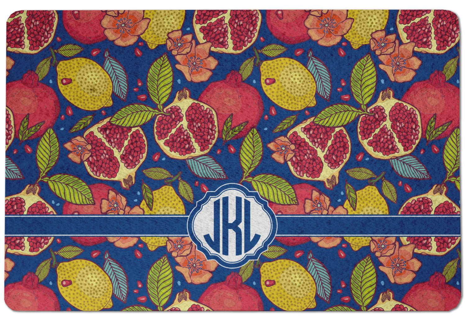 This beautiful Pomegranate & Lemon design is part of our fruits and vegetables collection. This design features the tasty fruits in multiple colors and sizes, surrounded by leaves and seeds on a dark blue background (however, you have the option of selecting any color!)