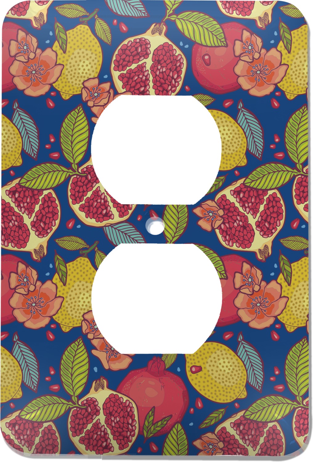 These outlet covers are made from a sturdy metal and display your design across its face. A satin finish coats the design to give it a finished look. The center of this outlet plate cover has a small hole to accommodate a screw upon installation. With your purchase of this decorative outlet cover, we include one screw. This outlet plate is of a standard size, and measures at approximately 3.5 by 5 inches.