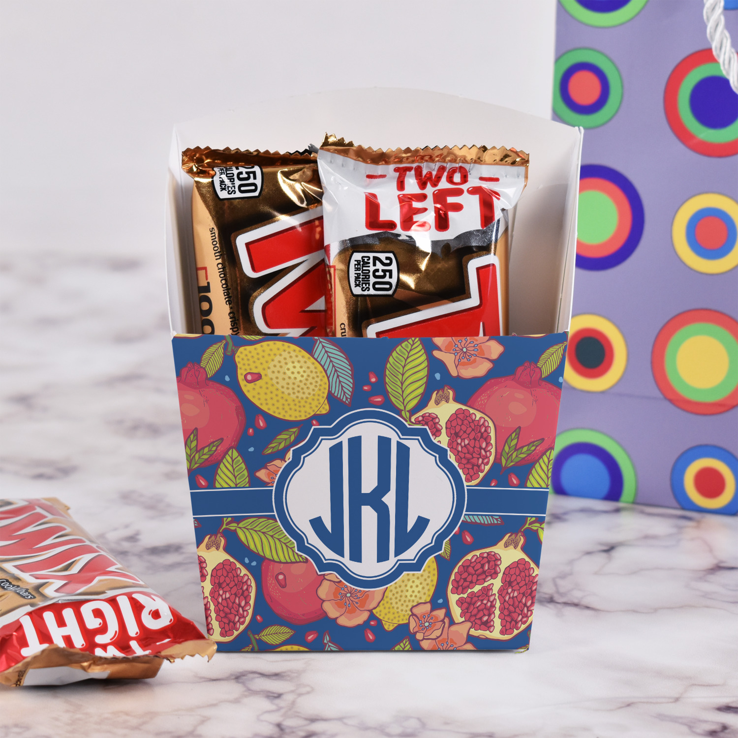 These french fry favor boxes are a pretty good size i.e. 5.25" tall x 4.25" wide x 1..625" deep. If you are not good with dimensions - it easily fits 2 full size Twix bars, or it is the size of McDonald's large fries.