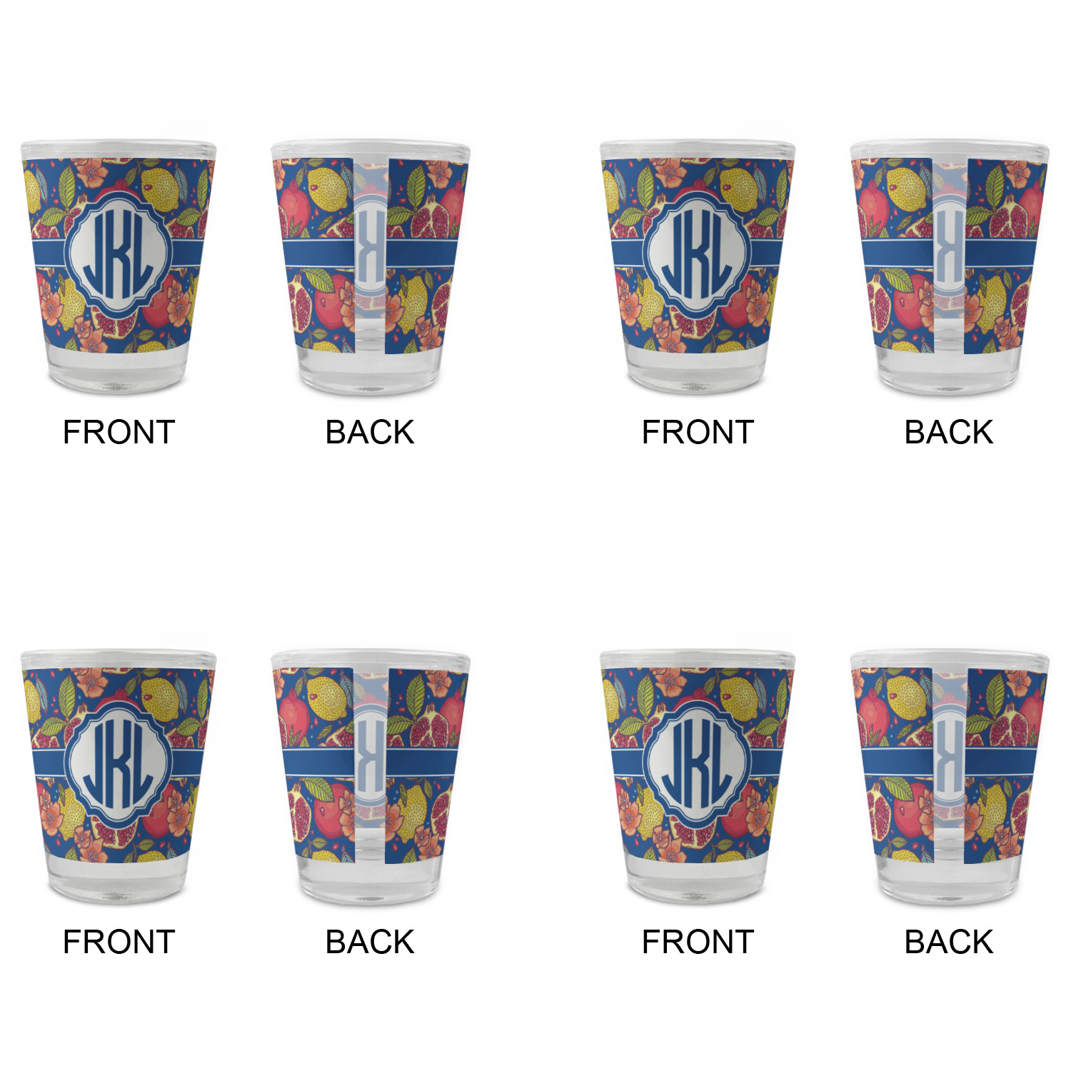 Made with frosted glass, these shot glasses are printed in full color with the design of your choice. They are a standard 1.5oz shot glass and are 2.4" tall. The print is wrapped around the shot glass in a full wrap and boldly displays your customization.