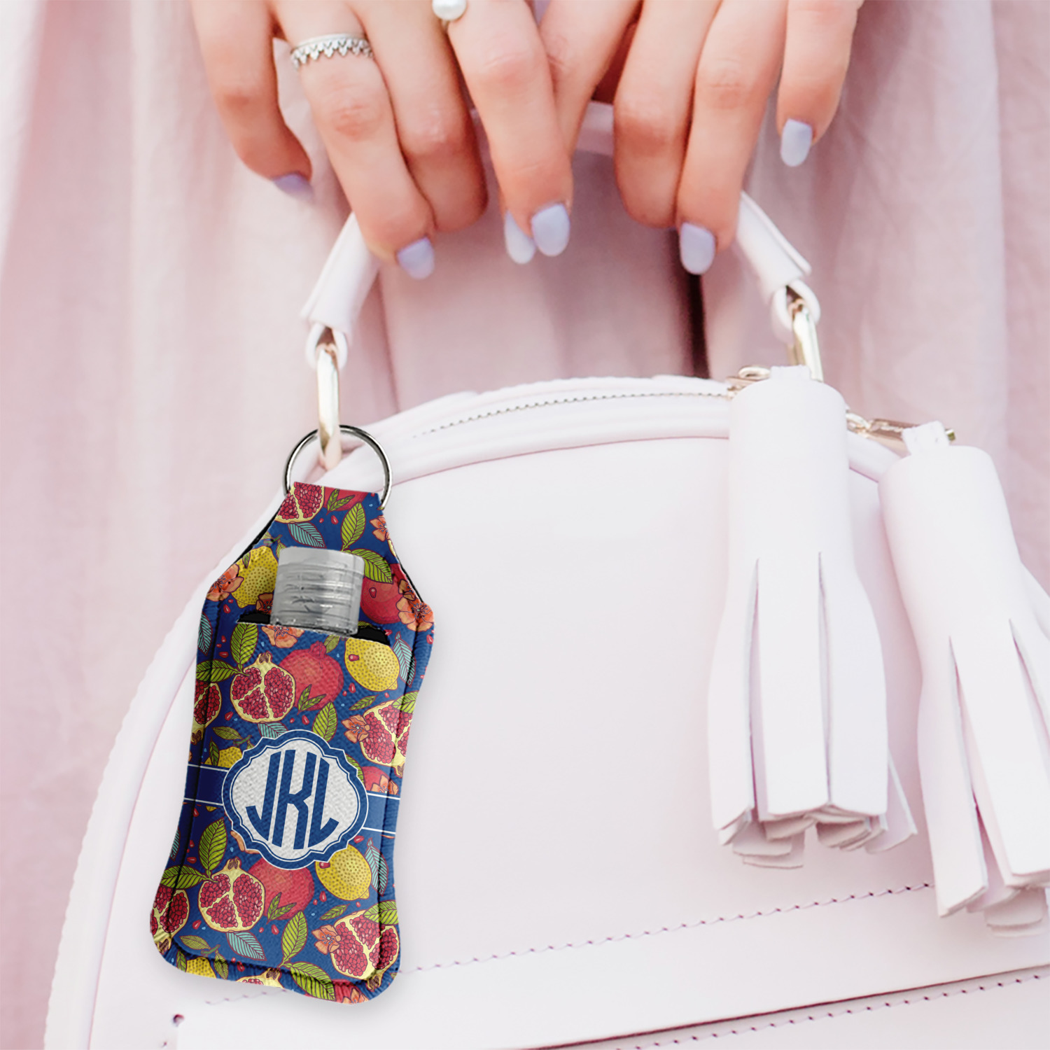 Each hand sanitizer holder comes with its own empty travel-sized, refillable hand sanitizer sure to fit snug in your customized sanitizer case! Our hand sanitizer cases are a durable, yet soft neoprene material sure to last any daily activities or travel agenda. Customize and personalize a hand sanitizer bottle holder with one of our two sizes - small (4.25" x 2.25") or large (5.5" x 2.5"). Each travel sanitizer holder comes with a keyring for attachment on bags, keys, or more!