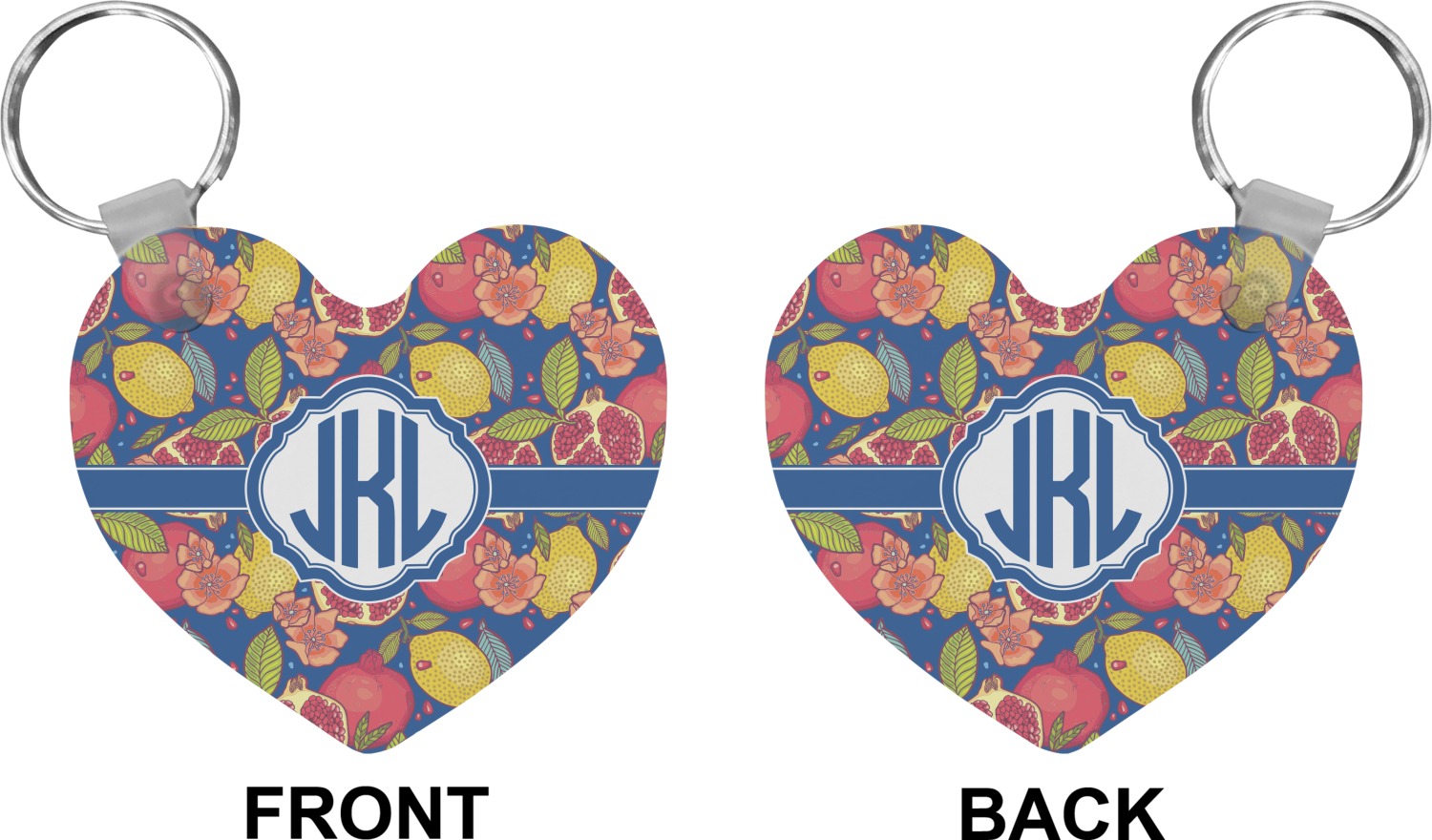 Our personalized keychains attach to the included metal, split key ring with a plastic, removable snap. Since a metal ring is included with your purchase, you have the liberty to keep your keys together on the ring, with or without your unique keychain. We offer this keychain in three different shapes: circle, heart, or diamond. We print your personalized design(s) on both sides of the key chain, and the surface has a glossy, reflective finish that only emphasizes your design. Each keychain is approximately 2.25 by 2.25 inches.