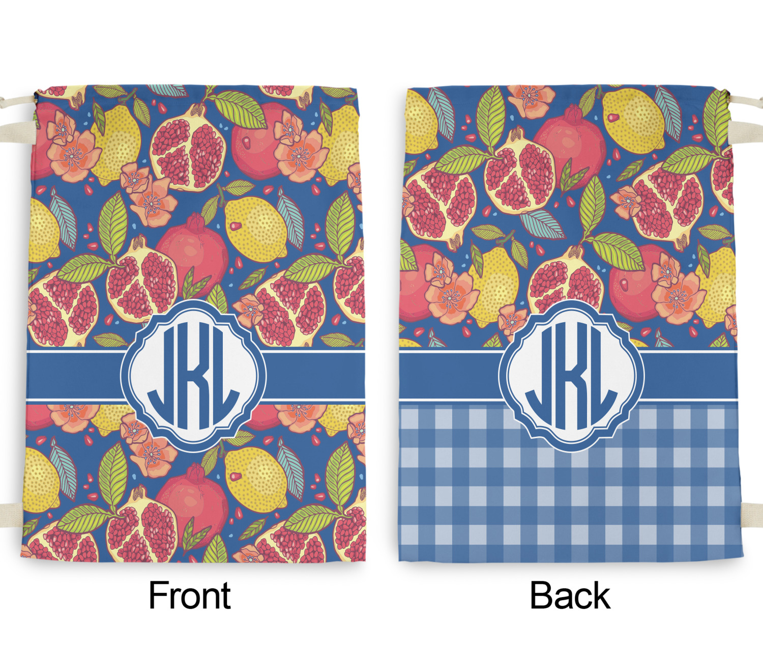 Carry your laundry in style with these customized laundry bags. Available in two sizes, featuring a natural colored woven strap and a cinch cord, these bags hold a lot of clothes or anything else you want to fit in them.