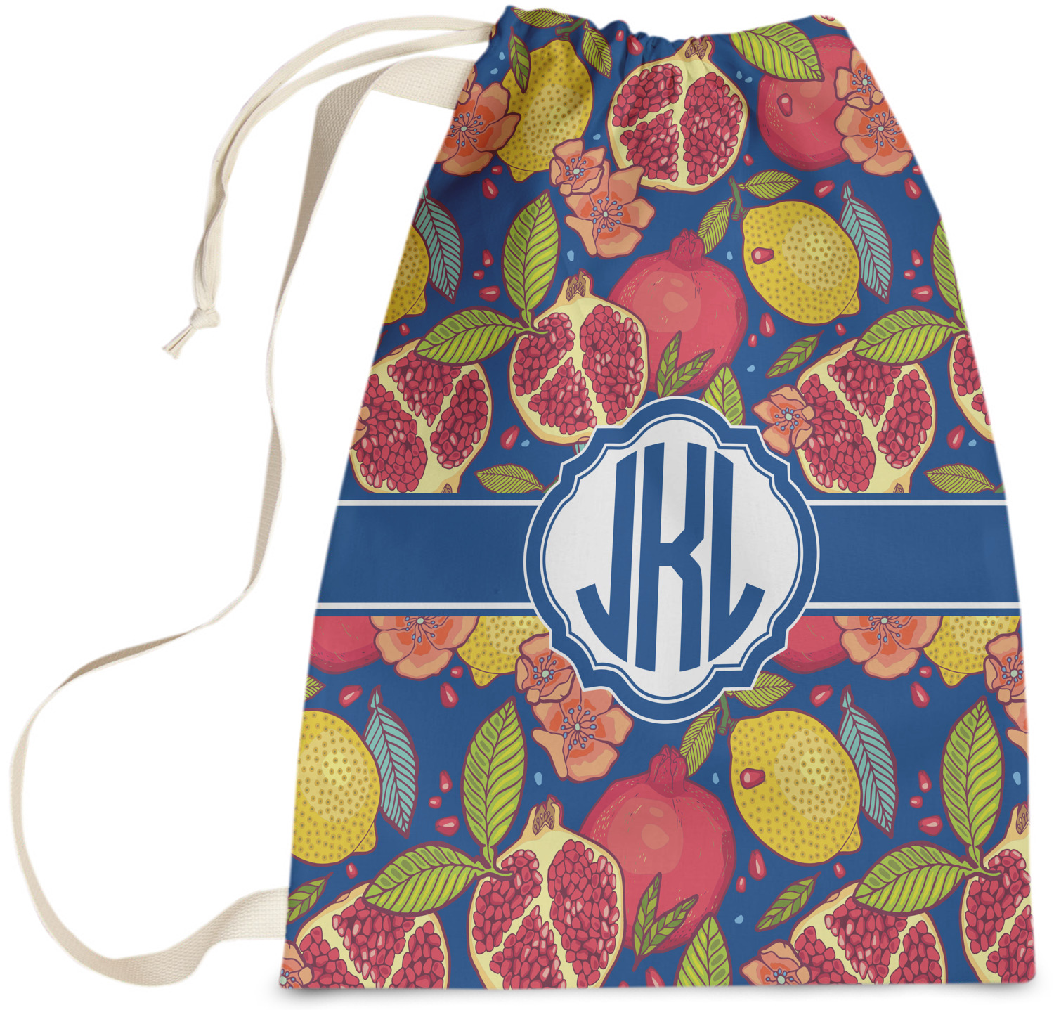 Carry your laundry in style with these customized laundry bags. Available in two sizes, featuring a natural colored woven strap and a cinch cord, these bags hold a lot of clothes or anything else you want to fit in them.